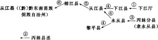 ①1912年称下江厅;1913年改为下江县。②1914年丙妹县丞改为丙妹分县(隶永从县)。③1936年撤销丙妹分县,并入永从县。④1941年撤销永从县,以东北地并入黎平县;以西南地并入下江县,同时县名改为从江县。⑤1958年12月从江县并入榕江县。⑥1961年8月恢复从江县。