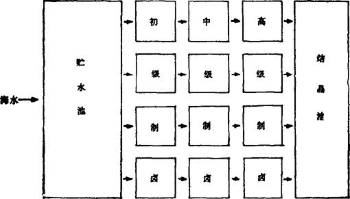 释义 | 从盐田设计着手 在盐田设计中,首先考虑在纳入的海水中含有较高的无机矿物(氮和磷等)和丰富的各种各样的生物体地区建场,为各种藻类兴旺生长创造有利条件。有足够的有机物质生产能力,在池底形成藻类垫层。在总平面布置上,宜将制卤区划分为若干小区,各自分别独立制卤,见图2-9-11。一旦发现某小区出现大量隐杆藻时,便可在该区内采取有效措施,加以隔离封闭。此法有利于盐田生物的管理。 图2-9-11 总平面布置(走水路线)示意图 |