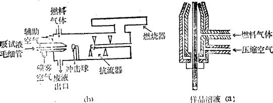 释义 | 仪器装置 原子吸收分光光度计主要由四大部分组成: 光源——发射待测元素的锐线光谱; 原子化器——产生待分析试样的原子蒸汽; 分光系统——分出共振线波长; 检测系统——检测器、放大器、读数装置和测量吸收。 (一)光源 光源的作用是供给原子吸收所需要的足够尖锐的共振线。 1.空心阴极灯 当前应用最广泛的原子吸收光源就是普通空心阴极灯。 当空心阴极灯的正负极通电后,电子由空心阴极位降区、负辉区流向阳极,并使充入的惰性气体电离。然后惰性气体的 图2-14 空心阴极灯示意图 内充低压惰性气体(氖、氩、氙、氦) d-阴极位降区 g-负辉区 空心阴极灯的光强度与灯的工作电流有关,增加工作电流可增加灯的发射强度。但灯的工作电流过大,会使阴极溅射增强,产生自吸现象。如图2-15。 图2-15 不同电流时 工作电流过高还会使填充气体“消耗”加快,从而缩短灯的寿命,使阴极温度过高,造成阴极物质熔化。但灯的工作电流过低也不好,因为放电不稳定,而且光强度过低也不利于测量。由于每种灯都选定了一个最大工作电流值,使用时不应超过此极值。 2.多元素空心阴极灯 采用多元素灯可免去换灯的麻烦,减少预热消耗的时间,还可降低原子吸收的成本。现已应用的多元素灯中,一灯可测六、七种元素,它是在同一个灯中用几种元素制成阴极,要求各元素的挥发率和原子蒸汽浓度要趋向一致。对谱线复杂的元素,要注意相互间的干扰。对组成元素要进行适当选择,使吸收线和干扰线之间至少要相距 (二)原子化系统 原子吸收光谱主要是基态原子参与吸收,因此,必须将以化合物或分子状态存在的试样进行原子化。分析的灵敏度、准确度和精密度等,在很大程度上取决于原子化情况,所以,试样的原子化是原子吸收光谱法的关键之一。一般还分为非火焰原子化及火焰原子化系统二种方法,常用的是火焰原子化法。即试样经化学处理制成溶液后由喷雾器吸入雾室,然后以雾珠状态进入火焰,最后在火焰高温下蒸发解离成基态原子。 将喷雾试样原子化的方法又分二种类型:全消耗型和预混合型。全消耗型的燃烧器,是将溶液直接喷入火焰,亦称紊流燃烧器。预混合型是用喷雾器将试样溶液雾化,在雾化室内将较大的雾滴除去,以使试样雾滴均匀化,再喷入火焰,亦称层流燃烧器,一般仪器多采用此种方法,简图见图2-16。 图2-16 喷雾—燃烧器示意 喷雾器的构造多用同心圆式的,雾化速度2-20ml/min,其雾化效率在5-10%之间,在雾化器喷嘴处5-10mm间安装冲击球,对提高雾化效率有显着作用,有的还在混合器中设扰流器。燃烧器的种类有单缝燃烧器、三缝燃烧器、气体屏敝式燃烧器等。通常空气—乙炔单缝燃烧器的火焰发射较弱、噪音较低、火焰中灵敏区较宽、易于对光、缝口不易堵塞,但气体耗量较多。 近年来非火焰原子化利用电流直接加热石墨或金属,取得较大成就,并已应用。其检出限可达10-12g数量级,一些元素的灵敏度可达10-14g,比火焰法高。但无火焰原子化的测定精密度较差,相对偏差约为4-12%,其中因试样微量引起的误差较大。 表2-6 火焰的温度 (三)分光系统 分光系统的作用是将欲测的吸收线与其他谱线分开。一般采用单色器。单色器的性能由色散率和集光本领决定。单色器的色散元件可用棱镜和衍射光栅。但棱镜的色散率低,而且随波长而变化,且长波区分散率小,不利长波区的分散,所以现代的原子吸收分光光度计多采用衍射光栅。它是利用光的衍射(绕射)现象分光,在金属或玻璃上刻条,每毫米刻600-2800条平行线,每毫米刻的线条愈多,其色散率愈大,并且不随波长而改变。 其色散率为: 式中:m——光栅级次; fz——暗箱物焦距; d——光栅常数; cosθ——衍射角。 由于θ很小, 在具体分析工作时,缝宽应通过实验来选定。 光栅分光系统是仪器最精密部位,不可轻易拆开,并须经常换硅胶防潮。 (四)检测系统 检测系统的作用是将来自锐线光源的入射光,经火焰样本原子吸收和经单色器色散后的光信号变成电信号,然后用电学系统放大后进行测量。检测系统一般包括光电转换信号放大、线信转换、量程扩大等,最后用电表、记录器数字电压表或数字打印机指示出原子吸收的程度,即吸光度。 |