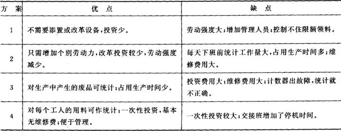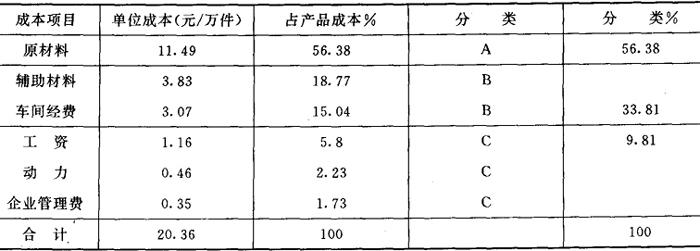 释义 | 价值工程在原材料管理中的应用 某螺帽五厂是生产M1.6~M6光六角螺母的专业化工厂。1991年原材料费用占生产成本的60%,提高原材料的利用率,减少浪费是降低成本的重要途径。1991年该厂充实管理力量,加强了原材料管理工作,把住原材料管理的四个关(即原材料进仓关、发料关、退料关,及料头料尾关)。对于不符合退料规定的材料,要继续使用,不准退料。用这种方法控制原材料,使生产中废料明显减少。但是由于生产管理基础差,原材料消耗定额没有落实到人,工人不承担经济责任,管理只靠少数人,管理稍放松一点,材料报废率就又回升。通过对薄弱环节的分析,感到原材料考核到人是解决原材料使用中吃“大锅饭”的关键。因此,该厂领导专门组织了各组室负责同志、技术人员进行了研究,运用价值工程原理,提出了解决方法,取得了显着的效果。 一、对象选择 他们分析了1981年该厂的产品成本构成,运用ABC分析法,对成本项目进行分类如下表: 由上表可见,原材料成本占产品成本的56.38%,因而首先作为价值工程的分析对象。 二、资料收集与分析 他们收集了1991年原材料耗用情况如下: 1.各类原材料占产品成本比重:铁丝23.31%,铜丝32.92%,钢丝0.15%。 2.全年生产中产生的废次品送厂外拣选的有1,487,000公斤,其中回收127.400公斤,拣剩废品为21,300公斤,占外拣数的14.3%。 3.废品外拣需支出拣选费50,960元(每公斤拣选费0.40元)。 4.原材料利用率74.5%。 1991年虽然对原材料管理采取了措施,但由于各人经济责任不清,无法对工人进行考核,因此在材料使用上存在着用好用坏、用多用少一个样的吃“大锅饭”现象。在用料时,有的工人把一捆原料拆散之后,料头一拿就是好几圈(一圈要二米多);一捆料将用完时,有的工人为了贪图方便,把余下的几圈,甚至一、二十圈扔掉,换上新料;发现部分材料开裂,不管好料坏料,一拉就是好几圈,使大量好料白白浪费。 由于原料管理抓而不紧,用料多少,没有考核。因此,在废次品管理上存在着很大的漏洞,有的工人出了废品后,把废螺帽朝机床身下倒,壁角落里塞,在废铁丝、废料中混,结果经常出现个人得质量奖,厂的废品率却很高的现象。 厂部为了把螺帽从废料中拣出,请街道工厂帮助拣选,额外支付了拣选费5万余元。 根据上述情况,迫切需要提出一种便于原材料统计管理的方法,保证原材料管理的有效实施,促进工人节约使用原材料。 三、功能分析与方案选优 在管理工作中应用价值工程,先要明确管理工作中有哪些功能,以标准件行业为例,加强原材料管理的目的是:防止材料供应和生产需要脱节,缩短生产周期;提高材料利用率;通过考核到个人,使工人生产的废品不能随意乱倒乱塞,提高产品质量;同时使生产材料摆放整齐,使环境清洁,创造文明生产的环境。 用简洁的语言表达,材料管理的基本功能是防止材料脱节、缩短生产周期;辅助功能为提高材料利用率,减少废次品;使用功能是强化生产责任,便于管理;外观功能是摆放整齐、环境清洁、提高文明生产水平。 根据1981年材料损耗情况,厂部组织部分懂行的同志,围绕“原材料考核到人,便于管理、统计”这个题目进行了研究,并提出了四个方案: 1.增加管理人员,加强管理,用磅秤统计材料耗用。 2.在行车上装吊秤,每班上下班吊秤统计材料耗用。 3.在冷镦机进料处安装计数器,对产品计数统计材料耗用。 4.采用“双料盘”管理方法,每台机床装两只料盘,各人分开用料,统计材料耗用。 各方案优缺点分析如下: 为了从上述四个方案中选优,首先用01评分法,由5人参加评价,求出材料管理四项功能的平均评价系数(见上页表)。 把平均评价系数作为加权系数,采用矩阵评分法对四个方案进行优选。 上表中,对每个方案的各个功能评分值,为参加评价人评分的平均值。 由上分析可见,采用“双料盘”的管理方法是可取的。 四、管理效果和经济效果分析 实行“双料盘”以后,由于对每个工人的材料消耗进行了考核,考核中暴露出矛盾就及时分析原因采取措施使管理工作逐步加强。如核算每个工人的材料消耗,一般材料利用率均为90%左右。由于对废料中开裂、黄锈、弯头、料头料尾分类统计,使材料管理工作更细致、更具体。1982年4~7月份,铁丝开裂2289公斤,黄锈130.5公斤,弯头582.5公斤,料头料尾2,255.5公斤。通过分类可有的放失地采取措施。如开裂是材质本身的原因,黄锈是保管不妥造成,弯头是吊装不当所致,料头料尾是生产工人人为造成。 实行“双料盘”以后,对每个生产工人用料实行定额发料,严格考核,减少了材料浪费,提高了材料利用率。1992年4月份铁丝报废率为1.35%,比3月份下降了0.39%,比1981年平均水平下降1.48%;铜丝的报废率为0.79%,比3月份下降1.44%,比1991年平均水平下降1.51%。 采用“双料盘”实行个人责任制后,废次品到处塞的现象基本上没有了。工人既注意节约用料,提高了利用率,更重视产品质量,加强巡回检验。减少废品。1982年4月份废次品有了明显的减少。 实行“双料盘”以后,经济效果也有一定提高: 1.原材料节约。 以1992年4月为例,同1991年平均水平相比,铁丝节约538元,铜丝节约730元。 2.节约外拣费 1992年4月同1991年平均水平相比,每万件产量的外拣品,从0.9公斤下降到0.7公斤。该月的产量为14350万件,故减少外拣品为: 14350×(0.9-0.7)=2870(公斤) 节约外拣费 2870×0.40=1148(元) 由于减少了外拣品而变为增