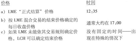释义 | 价格的使用 LME的规则具体规定了价格的建立、将其提交给LCH的时间以及万一LME未能这样做时,LCH可确定价格的时间。 用于计算保证金的价格一般是a)和b),特殊情况下可能会是c)。这些价格所使用的都是用合约的主要标价货币。 |