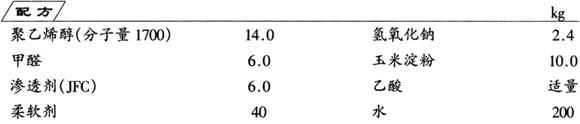 释义 | 仿麻布树脂处理剂 制法 在反应锅中,加入水100kg,再加入聚乙烯醇14kg和氢氧化钠,搅拌加热溶解至呈透明溶液。温度控制在70~80℃。然后将玉米淀粉调至呈稀浆液加入其中,待糊化成半透明状后,再加入其他物料,搅拌均匀,冷却。用水100kg稀释,用乙酸调节溶液pH值为6.0~6.5,即得本剂。 使用时,将织物浸入配制好处理剂中浸轧,然后拉幅烘干,即可。 织物经本剂处理后,可提高耐洗性和耐磨牢度,减少泛黄现象。 |
