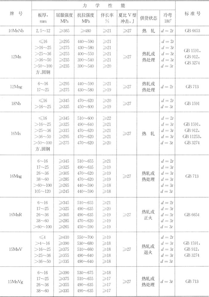 释义 | 低合金结构钢 低合金结构钢的合金元素总含量不超过5%,一般在3%以下。这类钢的强度显着高于相同含碳量的碳素钢。由于含有某些合金元素,使钢的强度、韧性、高温和低温性能、抗腐蚀性能均较相应的碳素钢为优,并具有较低的脆性转变温度。低合金结构钢一般为热轧状态供货,对于强度级别高或对冲击韧性有要求的低合金结构钢,应以正火状态或调质状态供货。对于利用沉淀硬化机制提高合金强度的低合金钢,则以沉淀硬化热处理状态供货。为保证钢材具有良好的焊接性,钢中的含碳量一般控制在0.2%以下,热轧状态的低合金结构钢的碳当量一般不应超过0.44%。 低合金结构钢的主要特点既有高强度,又有良好的塑性及韧性,可用于锅炉、压力容器、建筑及桥梁等各个领域。 表2.1-1、表2.1-2分别列出我国常用低合金结构钢的化学成分和力学性能。 表2.1-1 我国常用低合金结构钢的化学成分 表2.1-2 我国常用低合金结构钢的力学性能 表2.1-3、表2.1-4分别列出世界各国常用低合金结构钢的化学成分和力学性能。 表2.1-3 世界各国常用低合金结构钢的化学成分 表2.1-4 世界各国常用低合金结构钢的力学性能 |