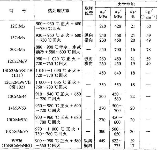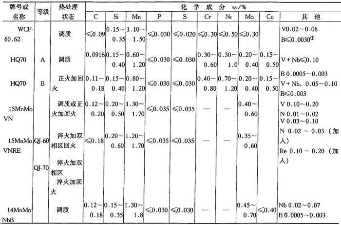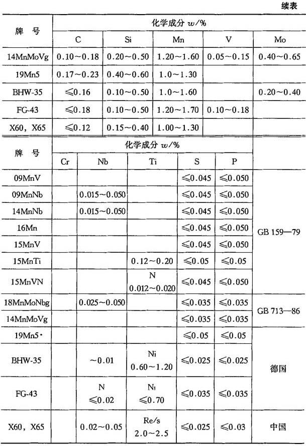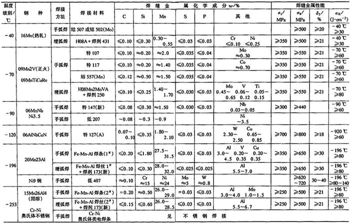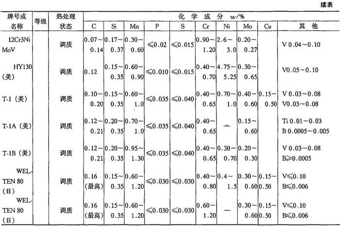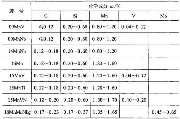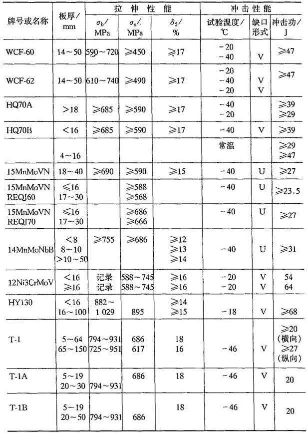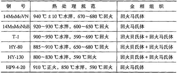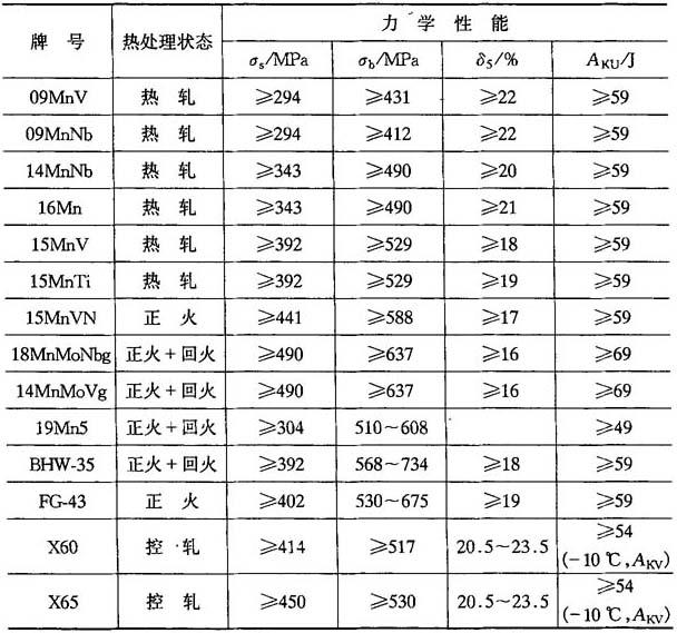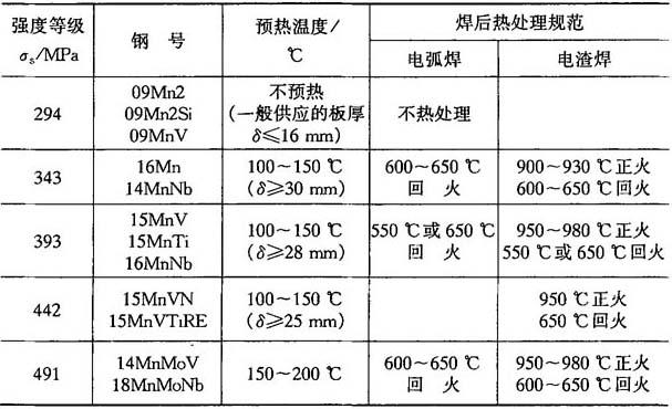 释义 | 低合金钢焊接 10.2.2.1 低合金钢分类 低合金钢是在碳素钢基础上加入一定量合金元素的合金钢,其合金元素总的质量分数含量一般不超过5%,以提高钢的强度并保证其具有一定的塑性和韧性,或使钢具有某些特殊性能,如耐低温、耐高温或耐腐蚀性等. 焊接生产中常用的低合金钢,大致可以分为两大类:一类是强度用钢,主要是根据强度来选用的,因此,合金化的主要目的是为了提高强度,并保证足够的塑性和韧性;另一类是特殊用钢,主要是为了满足一些特殊使用性能的要求,如高温性能、低温性能和耐蚀性能等. 1.强度用钢 这种钢的主要特点是强度高,塑性、韧性也较好,广泛用于压力容器、桥梁、船舶、飞机及其他金属结构.根据屈服强度级别及热处理状态,强度用钢又可以分为三种类型:热轧及正火钢、低碳调质钢和中碳调质钢等. (1)热轧及正火钢.这类钢的屈服强度为294~490MPa,一般都在热轧或正火状态下供货使用,属于非热处理强化钢. (2)低碳调质钢.这类钢的屈服强度为490~980MPa,是一种热处理强化钢,一般在调质状态下供货使用.其特点是碳的质量分数较低(一般在0.25%以下),不仅具有高的强度,而且具有良好的塑性和韧性,可以直接在调质状态下进行焊接,焊后不需进行调质处理,必要时可进行消除应力热处理. (3)中碳调质钢.这类钢的屈服强度一般在880~1176MPa以上,是热处理强化钢.这类钢与低碳调质钢的主要不同之处是碳的质量分数较高(大于0.3%).因此,它的淬硬性要比低碳调质钢高很多,这就使它有可能在热处理后达到很高的强度和硬度,但韧性相对较低,特别是给焊接带来了很大的困难.所以,这类钢经常需要在退火状态下进行焊接,然后再通过整体热处理达到所需的强度和硬度. 2.特殊用钢 根据使用中对不同特殊使用性能的要求,特殊用钢大致分为三种:珠光体耐热钢、低温钢和低合金耐蚀钢. (1)珠光体耐热钢.这类钢具有较好的高温强度和高温抗氧化特性.它主要用于最高工作温度为500~600℃的高温设备.这是一种以铬、钼为基础的低、中合金钢,随着使用温度的提高,钢中往往还加有钒、钨、铌、硼等合金元素.这种钢根据使用中的需要可以进行包括调质处理在内的各种形式的热处理.焊后这种钢一般不进行调质处理,主要进行高温回火处理. (2)低温钢.这类钢主要用于各种低温装置(-40~-196℃)和在严寒地区的一些工程结构.低温用钢与普通低合金高强度钢的最大差别就在于,低温用钢必须保证在相应的低温下具有足够高的低温韧性,这种钢大部分是一些含镍的低碳低合金钢,一般都在正火或调质状态下使用. (3)低合金耐蚀钢.这种钢主要用于制造车辆、石油、化工、造船等设备,能耐大气、海水及硫化氢等介质的腐蚀.这种钢一般在热轧或正火状态下使用,属于非热处理强化钢. 10.2.2.2 热轧、正火钢焊接 1.热轧、正火钢的成分和性能 热轧、正火钢的成分和力学性能如表10-9和表10-10所示. 表10-9 热轧、正火钢的化学成分 表10-10 热轧、正火钢的力学性能 屈服强度为294~392MPa级的热轧钢基本上都是属于C-Mn和Mn-Si系的钢种,主要通过合金元素的固溶强化获得高强度.锰是最常用的合金元素,有时也可能用钒、铌代替部分锰,以达到细化晶粒和沉淀强化的作用. 通常所谓的正火钢是指在固溶强化的基础上,通过沉淀强化和细化晶粒来进一步提高强度和保证韧性的一类低合金高强度钢.这类钢的屈服强度一般在392~490MPa之间.它是在C-Mn和Mn-Si系的基础上加入一些碳化物和氮化物的生成元素(如钒、铌、钛和钼等)形成的.正火的目的是为了使这些合金元素能以细小的化合物质点从固溶体中沉淀析出,并同时起细化晶粒的作用,提高强度的同时,适当地改善了钢材的塑性和韧性,以达到最佳的综合性能.对一些含钼钢来说,正火后还必须进行回火才能保证良好的塑性和韧性. 2.热轧、正火钢的焊接工艺 (1)焊接方法.热轧及正火钢焊接时,手工电弧焊、埋弧焊、气体保护焊和电渣焊等一些常用的焊接方法都能采用,主要根据材料厚度、产品结构和具体施工条件来确定. (2)焊接材料.选择焊接材料时必须考虑到两方面的问题:一要焊缝没有缺陷;二要满足使用性能的要求.焊接合金结构钢时,焊缝中的主要缺陷是裂纹问题.热轧及正火钢的焊缝金属的热裂及冷裂倾向在正常情况下是很小的,因此,焊接热轧及正火钢时,选择材料的主要依据是保证焊缝金属的强度、塑性和韧性等力学性能与母材相匹配.热轧及正火钢常用焊接材料选择见表10-11. 表10-11 热轧及正火钢常用焊接材料示例 (3)焊接工艺特点.焊接线能量的选择:焊接线能量的确定,主要取决于过热区的脆化和冷裂两个因素.根据焊接性分析,由于各种热轧正火钢的脆化倾向和冷裂倾向不同,因此对焊接线能量的要求也不同.含碳量低的热轧钢以及含碳量偏下限的16Mn钢焊接时,由于这些钢的脆化、冷裂倾向校对焊接线能量没有严格的限制.当焊接含碳量偏高的16Mn钢时,为降低淬硬倾向,防止冷裂纹的产生,焊接线能量应偏大一些.对于一些含铌、钒、钛的正火钢,为了避免由于沉淀相的溶入以及晶粒过热所引起的脆化,线能量应该偏小一些.对于碳及合金元素含量较高,屈服强度为490MPa的正火钢,由于淬硬倾向大,应选择较大的焊接线能量,但线能量不能过大,以免增大过热倾向.如果为了防止裂纹而采用焊前预热时,就不必采用大的线能量. 预热温度的选