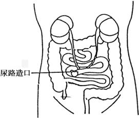 目前主要用于肾盂的恶性病变和膀胱癌。手术方式:在腹腔内游离一段回肠,将两侧输尿管连接在回肠上,通过回肠在腹壁上做一个可排尿的造口。造口通常位于右下腹。如下图:
