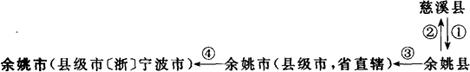 ①1912年称余姚县;1954年调整县界,将慈溪县南部43个乡镇划归余姚县。②1954年调整县界,将余姚北部48个乡镇划归慈溪县。③1985年7月16日,撤销余姚县,设立余姚市(县级市),由省直辖。④1995年余姚市(县级市)改为由省直辖,地级市代管。