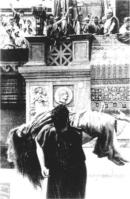 释义 | 你往何处去 【片头介绍】: 1912 黑白片(无声) 3000米 意大利西乃斯公司摄制 编导:恩里科·瓜佐尼(根据显克微支同名小说改编) 摄影:乔瓦尼·维特罗蒂 库尔·库克 主要演员:塞雷纳(饰彼得罗留斯) 卡斯戴拉尼(饰乌尔苏斯) 【剧情简介】: 故事发生在尼禄统治下的罗马帝国。 公元64年,尼禄这位不可一世的暴君感到自己的政权开始受到了威胁:罗马行政长官佩达尼乌斯遭到了暗杀。遇害前,佩达尼乌斯正在对从事秘密活动的基督教徒进行调查。于是,他只好另派自己的宠臣彼得罗留斯继续调查。 彼得罗留斯是个着名文人,虽然他深受皇帝的宠爱,在宫廷中颇有势力,但他深知,自己只不过是皇帝的御用文人而已,随时随地有被加害的危险。 因此,他处事小心谨慎,同时对人民宽厚为怀,所以对调查并不积极。这时,他的惟一亲人,外甥维尼兹尤斯出征巴提阿胜利归来。在一次聚会上,维尼兹尤斯认识并爱上了漂亮姑娘莉吉娅。她是个从小作为人质留在罗马的外国首领的女儿,父母双亡后,便被大臣普鲁因斯收养。 同她朝夕相处的有随身卫士、大力士乌尔苏斯。莉吉娅是个基督教徒。 当时,基督教被统治集团视为异端,但维尼兹尤斯同莉吉娅及其朋友相处中,发现了基督教徒的高尚品德,思想上亦发生了变化。他想娶她为妻,便求舅父彼得罗留斯向尼禄请求,将她赐给自己。 尼禄挥霍无度,常在宫廷中举行通宵达旦的舞会,令宫女们跳裸体舞。应彼得罗留斯的请求,尼禄派人将莉吉娅接到宫中,参加晚会,算是默许了这桩婚事。 晚会上,活泼可爱的莉吉娅能歌善舞,博得了尼禄小女儿的欢心。两人一起玩耍至深夜。次日,小女孩得了一种神秘的怪病,巫师们说,这可能是莉吉娅身上的邪气影响了小女孩。不久,尼禄的小女儿死去。 尼禄忧伤悲愤。听信巫师,迁怒于莉吉娅。 他竟然下令,将所有的基督教徒处死。基督教徒们东躲西藏,维尼兹尤斯为此惶恐不安。 一日,残忍的尼禄令禁卫军在罗马四处放火,他则带着群臣,在罗马近郊山上观望大火。这时他诗兴大发,即席作诗,渴望自己像荷马一样能够垂名青史。 但他哪里知道,这场大火烧毁了大半个罗马城。他的罪恶行径引起了罗马人民的激愤,一场骚乱即要发生。尼禄只好派深得人心的彼得罗留斯去进行平息,同时又派人四处散布谣言,说是基督教徒放的火,以转移人民对皇帝日益增长的不满。 于是,一场对基督徒的大迫害开始了,莉吉娅等人被捕入狱。 基督教徒们被一批批带进角斗场,有的喂了猛虎雄狮;有的惨死在角斗士的棍棒下。最后轮到莉吉娅受刑了。 她被剥去衣服,绑在一头凶猛的公牛的两角之间。公牛在角斗场上狂奔,这时,大力士乌尔苏斯突然出现。 他冲上前去,运用两臂的神力,将公牛摔死,从而救出莉吉娅。 彼得罗留斯为未能劝阻尼禄放火的罪行而惭愧。他不愿再在尼禄的宫廷里供事,便回到罗马乡下的家中,平静地自杀身亡。对他忠心耿耿的女奴艾尼丝也心甘情愿地随他而去。 罗马人民忍无可忍,终于发生了叛乱。尼禄在混战中,终于结束了自己罪恶、凶残的一生。 。【鉴赏】: 这是意大利第一部长故事片,改编自波兰作家显克微支曾获得诺贝尔奖的同名小说(1896年出版)。 原小说描写尼禄统治下的罗马历史,其故事情节曲折离奇,引人入胜。尼禄是罗马公元54~68年的皇帝。他骄奢淫逸,嗜血成性,深为人民所痛恶。公元64年,在他纵火毁烧罗马城后,人民便开始酝酿暴乱,同时元老院也对他日益不满。 元老院在68年终于对他下了死刑判决。他在起义者的包围中,被迫自杀,死时年仅30岁。 这部以古罗马为背景,反映暴君尼禄的影片,不仅征服了欧洲观众,还在美国多次放映(最后一次发行是在1919~1920年),为制片人赚回了原投资(50万里拉)的10至20倍的钱。雕塑家罗丹将其誉为“杰作”,是意大利电影初创期辉煌的历史宫闱片之一。 影片吸引人,不仅在于它的长度,还因为制片人不惜巨资,搭建了宏伟的罗马宫殿,组织了壮观的群众场面,如罗马的大火,御花园的人灯,皇宫的盛大宴会。另外,有许多特技的壮观场面令人惊奇和赞叹:如战车狂奔,炮火连天;竞技场的角斗以及把基督教徒仍进狮群等。 演员的演技亦备受赞赏,尤其是塞雷纳所饰演的狡猾的彼得罗留斯,卡斯戴拉尼所饰演的健壮活跃的乌尔苏斯更为人广泛称颂。卡斯戴拉尼的成功表演甚至受到了英王乔治五世的庆贺。 影片的成功激励并推动了长故事片的生产,而且也常常为后人所仿制或重拍。首先,在国内,敏锐的意大利电影企业家意识到,把意大利的历史古迹和风景作为影片的背景去使用,使影片更具有感染力。 于是,西乃斯和意大拉等大影片公司,相继拍摄了从荷马史诗到莎士比亚,从但丁作品到圣经故事的历史题材影片。 其中,最有名的是1914年摄制的大型故事片《卡比利娅》和其他古装片如《奥瑟罗》和《庞贝城的末日》等影片。这种以古建筑遗址为背景加上高超的雕刻技艺,为意大利早期电影带来了创作的繁荣。 其次,影片在其他国家,尤其是美国上映后,不仅受到观众的喜爱,更启发了电影工作者的深思。 它的技术革新和壮观场景设计使电影业发生了一次重大的革命。它那种使观众超越时空,恍如置身于影片中的自由表现手法就直接影响了格里菲斯,后者在仔细研究了《你往何处去?》、《卡比利娅》等片之后,即成功地拍摄了《党同伐异》中的巴比