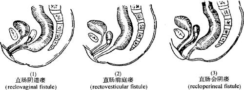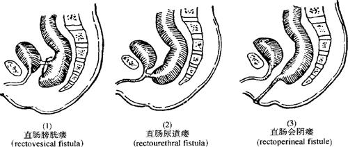 释义 | 先天性直肠肛门闭锁及狭窄 先天性直肠肛门闭锁及狭窄(congenital atresia and stenosis of the rectum ang anus)是新生儿较常见的发育异常。据上海第一医学院妇产医院统计30525名新生儿中发现11例,平均为2800∶1。此症常合并有其他畸形,如多见的有先天性心脏病、泌尿生殖系统畸形及上消化道某一段闭锁等。当出现合并这些畸形,将增加治疗上的困难和影响治疗效果。 直肠肛门闭锁及狭窄的形成的原因有多种,故闭锁及狭窄的情况也不同。按北京儿童医院资料,有如下四种(图9-32):①肛门狭窄(stricture of anus),在939例中见174例,占19%,无闭锁。②肛门闭锁(anus atresia)(低位肛门闭锁),即肛管发育正常,肛膜未破,肛门皮肤与肛管间有膜状隔,在939例中见190例,占20%。③直肠肛门闭锁(anorectae atresia)(高位肛门闭锁),肛门与直肠之间有一定距离,见77例,占8%。④直肠闭锁(rectal atresia),肛门外观正常,有肛管,但肛管与直肠之间有不通的间隔。此型较少见,在939例中仅见31例,占3%。 图9-32 先天性直肠肛门畸形 直肠闭锁可以是简单闭锁,也可以合并有各种瘘管。男性有:直肠膀胱瘘(rectovesical fistula)、直肠尿道瘘(rectourethral fistula)、直肠会阴瘘(rectoperinealfistula)(图9-33);女性有:直肠阴道瘘(rectovaginal fistnla)、直肠前庭瘘(rectovesticular fistula)、直肠会阴瘘(rectoperineal fistula)等等(图9-34)。 图9-33 男性肛门闭锁,合并瘘管 图9-34 女性肛门闭锁,合并瘘管 造成先天性直肠肛门闭锁及狭窄的原因,通常认为在胚胎7~8周时,后肠(posterior intestine)向会阴部伸展发育为直肠,而原肛(primary anus)则向体内凹入伸展与后肠相遇,最后中间仅有一膜状隔,称肛膜(anal membrane)。正常情况下肛膜破裂,后肠与原肛贯通即成为正常的直肠和肛门。如果由于某种原因导致后肠或原肛发育不全或贯通不全,即成为各种类型的直肠或肛门闭锁或狭窄;如果同时发生后肠与泌尿生殖窦分隔不全,可形成直肠与膀胱、尿道或阴道等之间各种瘘。 |