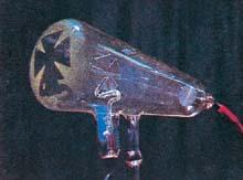 释义 | 克鲁克斯管 一种高真空(压强133.322微帕)的放电管。 为英国科学家克鲁克斯(William Crookes, 1832—1919)所创制。放电时有电子束从阴极射出,当它碰击玻璃管壁时,发出荧光。但因气压极低,管中没有辉光。 克鲁克斯管 |