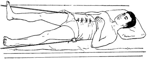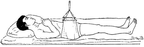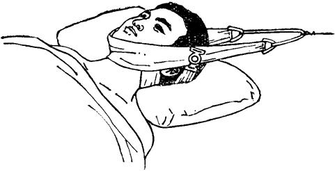 释义 | 兜带牵引 兜带牵引可分枕颌带、骨盆带和骨盆兜带牵引三种。 一、枕颌带牵引: 【适应症】 轻度颈椎骨折脱位、颈椎间盘髓核突出症等。 【器材准备】 枕颌带1个,滑轮支架1个,牵引绳1条,1厘米厚泡沫海绵、重量砝码等。 【操作方法】 将颏部、下颌角、枕骨粗隆及乳突部位垫以薄泡沫海绵,选择大小适中的枕颌牵引带,调节带的钮环,使其将耳后、枕部及下颌紧紧兜住。通过床头上的滑轮支架,进行持续牵引(图8~13)。 图8~13 枕颌带牵引方法 【牵引重量及时间】 牵引重量一般为2.5~3.5公斤,最大不应超过5公斤。牵引时间,外伤性骨折脱位一般为4~6周,颈椎间盘髓核脱出症,需待症状缓解,体征消失后,再维持1~2周。 【注意事项】 (一)用于颈椎骨折脱位时,牵引效果不确切,应2~3日摄片一次,如一周后仍达不到复位目的,应改用颅骨牵引。 (二)牵引中,如出现下颌、枕部、耳后等局限性疼痛,应查明原因,如有皮肤挤压伤,应松解枕颌带,并适当减少牵引重量。 (三)牵引重量超过5公斤,一旦枕颌带向后滑脱,将压迫气管和颈部血管,可能危及生命,必须密切观察,防止滑脱。 二、骨盆带牵引: 【适应症】 胸、腰椎压缩骨折合并脱位、腰椎间盘髓核突出症等。 【器材准备】 骨盆牵引带1个,滑轮支架两个,牵引绳两条,厚2厘米海绵衬垫、重量砝码等。 【操作方法】 将海绵衬垫放在骨盆牵引带的内面,经臀部后侧,环包腰部、双侧髂嵴及尾骶部,两端系带在前侧系紧打结,将两侧之系带连于牵引绳,通过床尾滑轮架挂重牵引(图8~14)。 图8~14 骨盆带牵引方法 【牵引重量及时间】 双侧重量对称,总量为10~25公斤,最大不宜超过30公斤。牵引时间,脊柱骨折脱位4~6周,椎间盘髓核突出需待临床症状缓解后,再维持1~2周。 【注意事项】 (一)牵引过程中,必须加强腰部背伸肌肉锻炼。锻炼时,可将牵引砝码摘除,练功毕,再挂重继续牵引。 (二)牵引时需将床位垫高15~20厘米。 三、骨盆兜带牵引: 【适应症】 分离型骨盆骨折合并骶髂关节脱位、耻骨联合分离等。 【器材准备】 骨盆兜带1个,牵引床1张,牵引绳2~3条,海绵衬垫(宽等于骨盆兜带之宽度,长应能环绕臀部周径的2/3)1块。如有骶髂关节脱位,应备胫骨结节牵引器材。 【操作方法】 将海绵衬垫置于骨盆兜带内面,经下腰部和臀部后方将臀部兜起,系好牵引绳,通过牵引床上的支架和滑轮进行牵引(图8~15)。如有骶髂关节脱位,应同时在脱位侧作胫骨结节牵引。 图8~15 骨盆兜带牵引方法 【牵引重量及时间】 两侧牵引重量要均等,以能使臀后侧2/3离开床面,但又不完全离开床面为度,一般为10~18公斤。牵引时间,以6~8周为宜。 【注意事项】 (一)牵引重量砝码,一定要在床尾远侧,并低于床面,避免失落砸伤下肢。 (二)两侧牵引绳勿交叉牵引,以免造成骨盆内径变小。需要加大兜带的向心挤压力时,可利用逐渐缩短两侧牵引绳之间的距离来调节。 【附】 各种牵引带的制作 一、枕颌牵引带:用白细布折迭四层,制成带状,宽4厘米(下颌部略宽1~2厘米)。兜带的两端和两侧各有钮环,可供牵引和固定用(图8~16)。 图8~16 枕颌带 二、骨盆牵引带:用帆布折迭成双层缝合,上窄下宽,呈梯形,宽度约为40~60厘米,长度约为100~120厘米,在距两端各10厘米处,等距各钉布带4条,在其下边近两端处即相当于股骨中轴线一致部位,各钉一个扣环(图8~17) 图8~17 骨盆牵引带 三、骨盆兜带:取材同上,宽约为45~65厘米,长为臀部周经加20厘米。两侧套有木棒和绳索(图8~18)。 图8~18 骨盆兜带 |