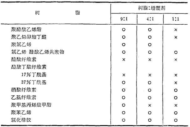 表1-18 六氢化邻苯二甲酸二(2-乙基己酯)与树脂的相容性