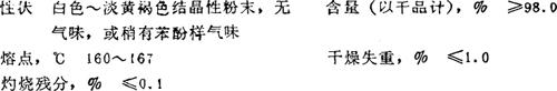 性能 白色或微带黄色结晶性粉末,无气味或略带苯酚气味。熔点164~165℃。溶于醇、醚、丙酮、氯仿、丙二醇、聚乙二醇、橄榄油、棉籽油和稀碱液,实际不溶于水。