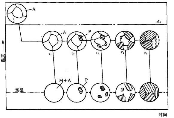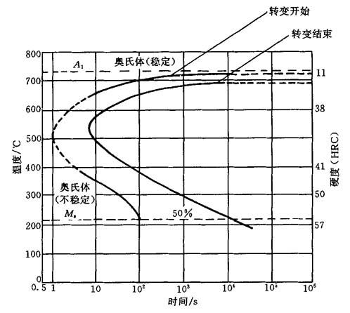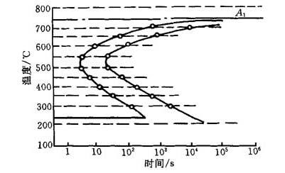由上述可见,要建立C曲线,必须分别测出各个温度下等温转变的开始时刻和终了时刻,同时还要测出Al点和Ms点的温度.