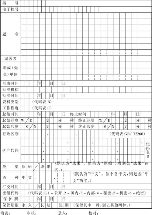 释义 | 关于开展地质资料目录数据库建设和地质资料数字化的通知 各省、自治区、直辖市国土资源厅(国土环境资源厅、国土资源和房屋管理局、房屋土地资源管理局、规划和国土资源局)、部信息中心: 为推进地质资料数字化,促进地质资料全社会共享,根据国土资源部“十五计划”,部决定开展成果地质资料目录数据库建设,继续开展地质图文资料数字化工作。现就上述工作的有关问题通知如下: 一、为保障信息的共享,成果地质资料目录数据库建设应遵循统筹规划、统一标准、统一软件、分阶段完成的原则。各省(区、市)国土资源管理部门应在2001年底完成部分A类地质资料目录数据库建设,2002年6月底前完成所有A类地质资料目录数据库建设,并为社会提供网上或单机查询服务;2002年12月底前完成所有地质资料目录数据库建设,并为社会提供网上查询服务。部已委托部信息中心开发数据库软件,并将于近期开展数据库建设的相关技术培训。 二、关于地质图文资料数字化工作,部已在2000年以国土资发〔2000〕13号对此项工作做出初步部署,绝大多数省(区、市)国土资源管理部门已按计划完成各种比例尺的区调地质资料数字化工作。根据国土资源部“十五”计划,部计划在“十五”期间完成重要地质图文资料的数字化。为保障这一计划的落实,各省(区、市)国土资源管理部门应在前一阶段工作的基础上,根据本省(区、市)地质资料需求特点,继续开展重要矿产勘查资料和水文地质、工程地质、环境地质、灾害地质资料的数字化工作,力争于2003年底完成。2005年底完成所有重要地质资料数字化。 三、为保障地质资料目录数据库建设和地质图文资料数字化能按时、按质完成,各省(区、市)国土资源管理部门应在项目、经费等方面做出妥善安排,并将落实情况于2001年底前报部储量司。部将根据各省(区、市)项目落实情况和工作进展情况,通过“数字国土工程”,由部信息中心以项目协作的方式给予经费补助,具体事宜可参照国土资发〔2000〕13号的规定执行。 附件:地质资料电子目录着录格式规定(试行) 二〇〇一年八月二十四日 附件 地质资料电子目录着录格式规定(试行) 为充分发挥地质资料在国民经济和社会发展中的作用,扩大地质资料使用范围和信息渠道,建立全国可交流的地质资料电子目录系统,现对地质资料电子目录着录格式及有关事项规定如下: 一、着录成果地质资料和原始地质资料(原本档案和资料)案卷级(报告级)电子目录时应当遵守《地质资料档案着录细则》(DA/T23—2000)。 二、地质资料电子目录数据库及软件系统应包含下列规定的基本着录项目: 题名、档号、电子文档号、档案馆代号(名称)、资料类别(代码)、地质工作程度(代码)、矿产名称(代码)、行政区划代码(名称)、形成(提交)单位、编着者、批准机构、类型、语种、密级、保管期限、保护期、原本保存单位及地点、实物保存单位及地点、形成(提交)时间、起止日期、批准时间、汇交时间、地理坐标、主题词或关键词、内容提要。 三、向地质资料汇交管理机关报送地质资料电子目录数据,应包含《地质资料电子目录主结构表》(见附表)中各数据项,各数据项的数据特征应符合附表的要求。 附表:1.地质资料电子目录主结构表 2.成果地质资料目录数据库着录表 附表1 地质资料电子目录主结构表 附表2 成果地质资料目录数据库着录表(一) 成果地质资料目录数据库着录表(二) |