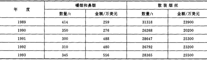 表2-2-271989~1993年美国其他烟草制品的出口情况