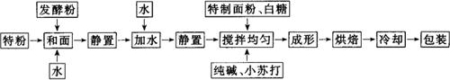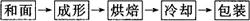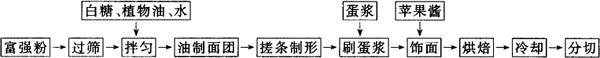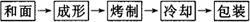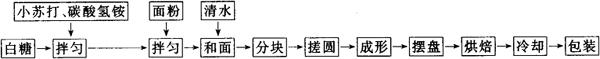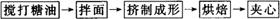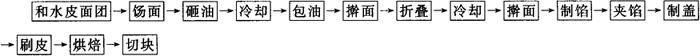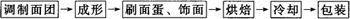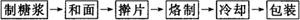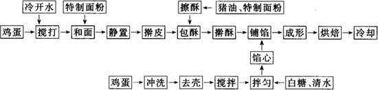 释义 | 其他烤制糕点 (一)茯苓夹饼 1.原料配方(kg) 精白面粉1.25,淀粉5,白糖18.75,核桃仁18.75,蜂蜜9.25,桂花1.25,植物油0.01。 2.工艺流程 3.制作方法 (1)制饼皮 将精白面粉和淀粉调成糊状,将特制的烘模(一端有绞链连接的带柄圆形铁片,模直径为13cm,模内刻有凹形花纹)。在火上烤热,内壁刷上一层植物油,用勺放入面糊少许,马上将烘模合上数秒钟,将面糊压成薄片并烤熟。然后开模取出饼皮。 (2)制馅 将蜂蜜与白糖放在锅里熬化,然后将切细的核桃仁、桂花放入糖中拌匀。 (3)夹馅 趁热取馅40g在饼皮上铺平至饼皮半径的3/5处,另取一张饼皮压在馅上,便为成品。 (4)包装 按规格用纸和纸盒包装。 4.质量要求 规格形状:两张饼皮夹馅成圆饼状,边缘齐全,厚薄一致,不露馅。 色泽:白色,如茯苓片,有印模花纹。 口味口感:有果料、蜂蜜、桂花的浓郁香味,酥脆香甜。 (二)蛋卷 1.原料配方(kg) 白糖25,面粉12.5,蛋浆25,猪油4,桂花1。 2.工艺流程 3.制作方法 (1)和面糊 在和面机内先用蛋浆化糖,搅拌均匀,最后放面粉、桂花、猪油,和匀成面糊。 (2)烘焙成形 将和好的面糊送入蛋卷机内烘焙卷制成形。 (3)包装 应密封包装,防止回潮。外用纸盒包装,以免碰碎。 4.质量要求 规格形状:粗细、长短均匀一致。似纸筒状,俗称“火纸筒”。 色泽:金黄色。 组织状态:有均匀细蜂窝。 口味口感:香甜酥脆,具有桂花香味。 (三)高桥薄脆(上海名产) 1.原料配方(kg) 面粉10,白糖6.25,饴糖0.5,猪油2,蛋浆3,黑芝麻0.7,小苏打适量。 2.工艺流程 3.制作方法 (1)和面 将面粉、白糖、蛋浆先放入和面机搅拌均匀,再放入小苏打、猪油、水、盐、饴糖,拌和均匀,最后放入黑芝麻,充分拌和成软硬适度的面团。 (2)成形 取一块面团用滚筒将其压成约1.6mm的薄片,用直径5cm大小的圆环铁模把薄片压脱成饼坯。 (3)烘焙 将饼坯平放在烤盘中,入炉以140~160℃的温度烘焙1~2min,底面呈黄色时翻面再烤至熟,趁热装箱压紧。 (4)冷却、包装 待完全冷却后即可用纸盒包装。 4.质量要求 形状规格:圆形薄片,厚薄均匀,两面可见芝麻,无浮粉。 色泽:金黄色,不焦煳。 口味口感:香甜酥脆,有芝麻香味。 (四)长寿薄脆(重庆特产) 1.原料配方(kg) 特制面粉34,白糖17.5,香料0.15,蛋浆0.05。 2.工艺流程 3.制作方法 (1)制糖浆 将白糖加水煮沸(水量为糖重的30%),用蛋浆提纯,熬到105℃左右。 (2)和面 糖浆冷却后将特制面粉与之混合,放入香料,充分糅合至面团不粘手时,即可分料。 (3)擀片 将揉好的面团分成125g重的小块,擀成直径30cm,厚1mm的薄圆片。对折两次后成为四层扇形片,再用特制的刀切出荷叶边。 (4)烙制 将饼坯展开用平锅小火分两次烙制。第一次基本烙熟,时间约1min。第二次将基本烙熟的饼片切成四块,再烙制1min左右,翻面再烙使饼片成熟酥脆,但不焦。 (5)冷却、包装 将烙好的产品叠好用一洁净木板压好,上压5kg重物,直到完全冷却不会变形。即可包装。 4.质量要求 规格形状:扇形薄片,荷叶边,厚薄均匀,无气泡,无浮粉。 色泽:乳白色,色泽一致,无黑点。 组织状态:酥脆,剖面有微小气孔。香甜爽口。 (五)双麻 1.原料配方(kg) 标准粉29,白糖10,饴糖5,芝麻7.5,猪油6,桂花0.75。 2.工艺流程 3.制作方法 (1)和面 先将水化白糖,再加入饴糖、猪油,然后加入面粉及辅料,边加边搅拌均匀。 (2)成形 将和好的面团分切,擀成5mm厚的薄片,用直径为7cm的铁圈模压出圆形半成品。 (3)粘芝麻 将半成品两面刷水,粘附芝麻。 (4)烘焙 炉温200℃烤10min即可出炉。 (5)冷却、包装 自然冷却后,密封包装。 4.质量要求 规格形状:圆形,块形整齐,表面附有芝麻上下火色一致,不焦煳,不青心。 色泽:呈浅棕色。 组织状态:有均匀小蜂窝,无杂质。 口味口感:酥脆适口,有芝麻、桂花的香味。 (六)奶油夹心片 1.原料配方(kg) 特制面粉0.75,糖粉0.5,奶油0.5,蛋浆0.38。 2.工艺流程 3.制作方法 (1)搅打糖、油 先将奶油与糖粉放入搅拌机搅匀,然后分几次逐渐加蛋浆,边加边搅,至搅拌均匀。 (2)拌面 将面粉投入糖油蛋浆中拌匀成为面糊,拌匀即可,不宜多搅,防止面筋韧缩影响制品起发。 (3)挤制成形 在铁盘内铺上牛皮纸,将面糊装入布袋(裱花袋),用平口挤射管挤在纸上,形状可分两种,一种椭圆形,一种圆形,大小要均匀。 (4)烘焙 成形后立即入炉以200℃左右的温度烘至金黄色。 (5)夹心 将烘焙好的坯子剥下,下面一片挤上糖膏、果酱或巧克力等,上面再盖上一片即为成品。 4.质量要求 规格形状:椭圆形或圆形,中夹果酱或巧克力等。 色泽:金黄色。 口味口感:酥脆,有奶油或果酱、巧克力等的香甜味。 (七)回饼 1.原料配方(kg) 特制面粉100,川白粉50,发酵粉0.5,小苏打0.35,薄面10。 2.工艺流程 3.制作方法 (1)拌料 将配料中10%的特制面粉加发酵粉和水(水量为所用特制面粉的60%~70%)拌和均匀,在20℃左右发酵3~4h,即制成发酵面。再加入特制面粉的30%~40%和清水(约为所加特制面粉的70%)拌和后,静置7~8h,再下完特制面粉、白糖和1/2的小苏打,搅拌(或糅合)均匀(手工拌料需再静置10h左右)。然后抽样检查碱度:碱过多色发黄,过少味发酸。如发现以上现象,应加发酵粉或小苏打予以调整,方可成形。 (2)烘焙 烘焙以吊炉最好,炉温280℃左右,烘焙时要底火小,面火大,时间4min左右。 4.质量要求 规格形状:圆形略凸,大小均匀,表面光洁,底面有皱纹,无裂口。每个50g重。 色泽:粉白色。 组织状态:松泡绵软,剖面状似丝瓜瓤。 口味口感:柔软细