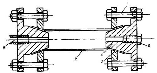1-紧固螺栓 2-试样 3-法兰 4-密封塞头 5-排气孔 6-接压力机头