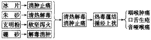 【类方】 青黛冰硼散(《全国中药成药处方集》福州方):由冰片、青黛、硼砂(煅)、黄连、人中白、生甘草、石膏(煅)组成。研极细粉,吹患处。功能清热解毒,消肿止痛。主治小儿胎火过盛,口舌生疮及大人喉痛。