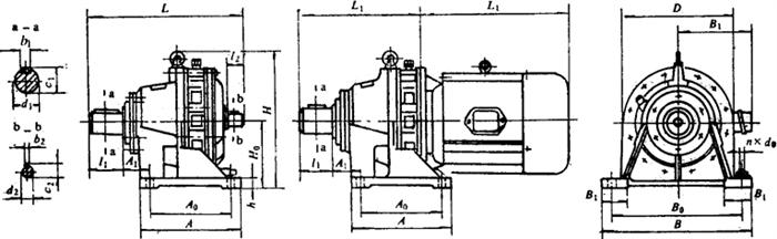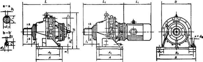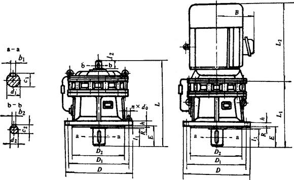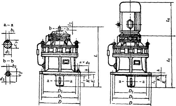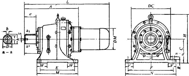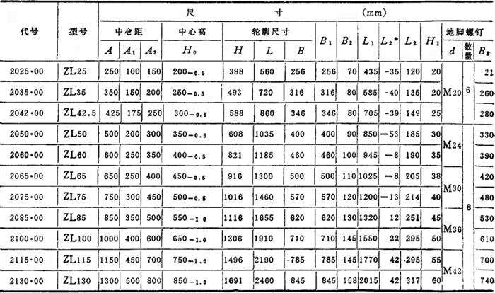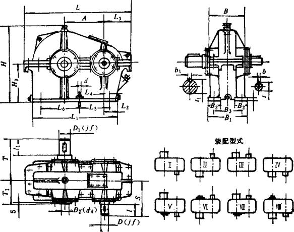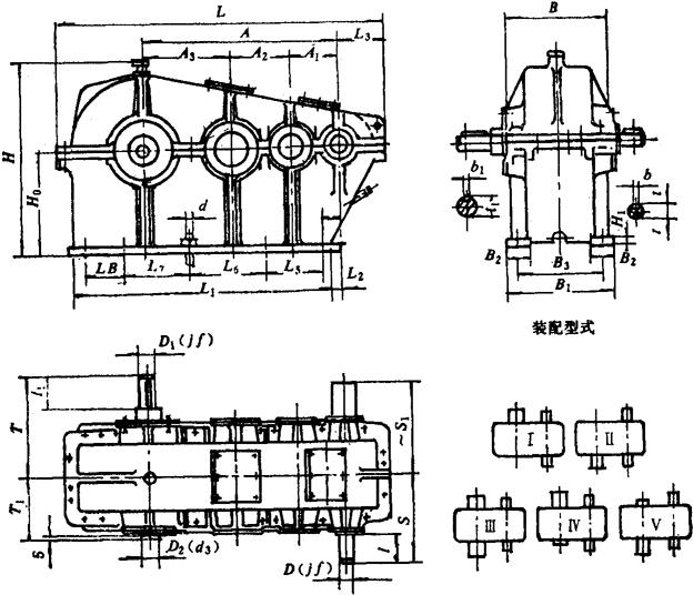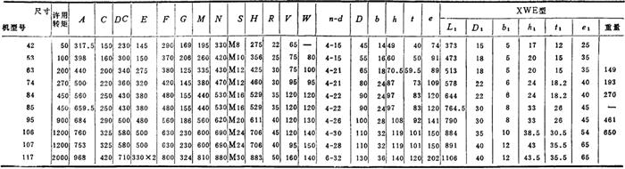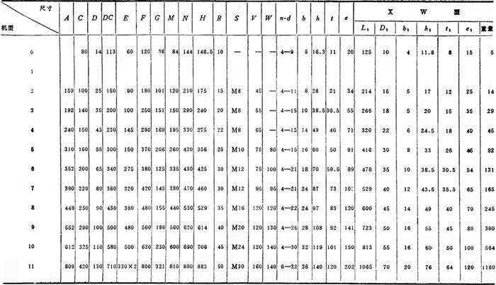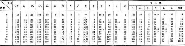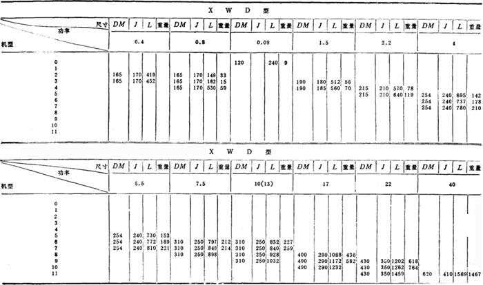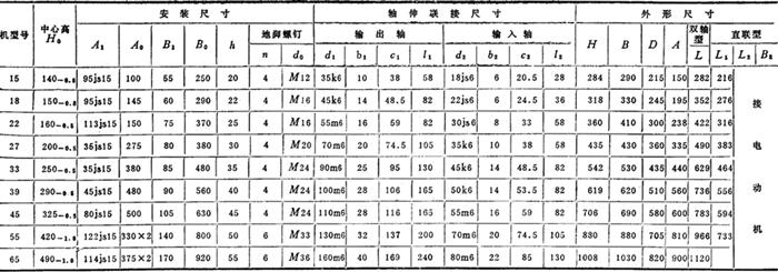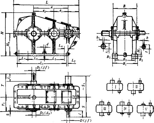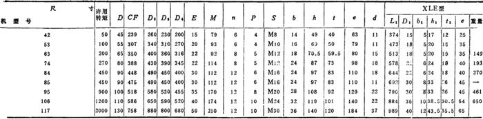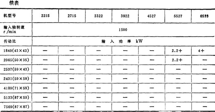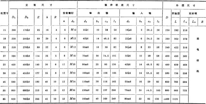 释义 | 减速机 减速机是原动机和工作机之间的独立的闭式传动装置,用来降低转速和相应地增大扭矩。在某些场合,也有用来增速的。减速机具有结构紧凑、传动效率高、传动准确可靠、使用维护方便等优点,在各种机械设备中应用甚广。这里仅列几种在制盐工业中常用的减速机。 (一)圆柱齿轮减速机 根据机械部标准JB1130-70规定,有3个系列的外啮合渐开线斜齿圆柱齿轮减速机,即ZD(单级)、ZL(两级)、ZS(3级)。其适用条件为: 减速机齿轮传动圆周速度不大于18m/s; 减速机高速轴的转数不大于1500r/min; 减速机工作的环境温度为-40℃到+45℃; 减速机用于正、反两向运转。 1.减速机的选用 已知条件:低速轴扭矩M(或高速轴功率N1)、高速轴转数n1、低速轴上转数及扭矩变化图、最大尖峰负荷、传动比i、寿命、装配型式。 选用程序: (1)根据传动比i选择ZD、ZL、ZS减速机。 (2)决定工作类型:查表3-5-9。 表3-5-9 减速机的工作类型 注:(1)寿命按10年计算。 (2)中型、重型和特重型每一循环的工作时间t工作不应超过20min,否则应按连续型计算。 (3)下标O——工作;C——循环。 (3)按减速机的工作类型和高速轴转数n1选出低速轴的许用扭矩并确定中心距。 (4)核算尖峰负荷 最大许用尖峰负荷为连续型承载能力的3.1倍。最大许用尖峰负荷在一个工作循环期内连续作用时间不应超过工作时间t工作的3%,同时在这一短暂的时间内,小齿轮进入啮合的次数不应超过500次。 (5)确定传动齿轮精度等级,写出所选减速机的代号。 2.减速机的代号 包括减速机的型号、总中心距、传动比、装配型式及齿轮精度等级。 减速机型号——ZD表示单级传动的圆柱齿轮减速机。 ——ZL表示两级传动的圆柱齿轮减速机。 ——ZS表示三级传动的圆柱齿轮减速机。 总中心距——用实际数字表示,cm。 传动比代号——用阿拉伯数字1、2、3……顺序表示。 装配型式代号——用罗马数字Ⅰ、Ⅱ……顺序表示。 齿轮精度等级代号-—表示减速机第一级传动齿轮精度等级。 8-7-7-Dc用“A”表示。 8-8-7-Dc不予表示。 例如 3.结构尺寸: 装配型式及外形尺寸: ZD 减速机见图3-5-25,表3-5-10 图3-5-25 ZD型圆柱齿轮减速机 表3-5-10ZD圆柱齿轮减速机外形尺寸 ZL 减速机见图3-5-26,表3-5-11 图3-5-26 ZL型圆柱齿轮减速机 表3-5-11 ZL型圆柱齿轮减速机外形尺寸 ZS 减速机见图3-5-27,表3-5-12。 图3-5-27 ZS型圆柱齿轮减速机 表3-5-12 ZS型圆柱齿轮减速机外形尺寸 带负号的尺寸在高速轴轴心线的右侧,不带负号的尺寸置位与图示位置相同。 4.中心距及公称传动比: (1)中心距应符合表3-5-13、表3-5-14、表3-5-15的规定。 表3-5-13 单位:mm 表3-5-14 单位:mm 表3-5-15 单位:mm ①ZD减速器的中心距A(表3-5-13) ②ZL减速器的中心距A(表3-5-14) ③ZS减速器的中心距A(表3-5-15) (2)公称传动比应符合表3-5-16、表3-5-17、表3-5-18的规定。 表3-5-16 表3-5-17 表3-5-18 ①ZD减速器的公称传动比i ②ZL减速器的公称传动比i ③ZS减速器的公称传动比i 减速机的实际传动比与公称传动比的偏差:当i=2~4.5时,不大于±2.5%;i=5~280时,不大于±4%。 (二)摆线针轮减速机 减速比大,单级传动比为11~87,双级传动比为121~7569;结构紧凑、体积小、重量轻、摆线针轮减速机与同功率的两级普通圆柱齿轮减速机相比,体积可减小 1.B系列摆线针轮减速机 根据机械部标准JB2982-81规定,有BW、BL、BWY、BLY单级和双级摆线针轮减速机。 (1)减速机的代号 BW——摆线针轮减速机,双轴型,卧式安装。 BL——摆线针轮减速机,双轴型,立式安装。 BWY——摆线针轮减速机,异步电动机直接联接型,卧式安装。 BLY——摆线针轮减速机,异步电动机直接联接型,立式安装。 机型号——用针齿中心圆直径cm表示(双级减速机按低级,高级连续表示)。 传动比——用阿拉伯数字表示(双级减速机用低速级传动比×高速级传动比表示)。 配用电机功率kW(双轴型不予表示) 例如: (2)减速机的主要参数 ①单双级减速机的针齿中心圆直径Dz应分别符合表3-5-19和表3-5-20的规定。 表3-5-19 单位:mm 表3-5-20 单位:mm ②双轴型单级减速机的传动比和输入功率应符合表3-5-21的规定。 表3-5-21 ③电动机直联型单级减速机的传动比和输入功率,应符合表3-5-22的要求。 表3—5-22 注:(1)表中每一机型、每一传动比对应的输入功率中数值最大者(包括带括号者),为设计时输入功率;数值较小者,为可以配备的电动机功率。 (2)带( )者表示非Y系列电动机的功率。 (3)带(立)者表示仅立式减速机配备的功率。 ④双轴型双级减速机的传动比和输入功率应符合表3-5-223的规定。 表3-5-23 ⑤电动机直联型双级减速机的传动比和输入功率应符合表3-5-24的规定。 表3-5-24 注:表中带“+”者表示所配电动机的功率大于减速机的设计功率,减速机应在许用输出转矩内使用或设有过载保护装置;带“-”者表示所配电动机的功率小于减速机的设计计算。 ⑥单级减速机的输出轴许用转矩应符合表3-5-25的规定。 表3-5-25 表3-5-26 表3-5-27 单级卧式摆线针轮减速机外形尺寸(mm) 表3-5-28 双级卧式摆线针轮减速机外形尺寸(mm) 表3-5-29 单级立式摆线针轮减速机尺寸(mm) ⑦双级减速机的输出轴许用转矩应符合表3-5-26的规定。 (3)安装、联接及外形尺寸 ①单级卧式减速机(包括电动机联型)的安装、联接及外形尺寸见图3-5-28、表3-5-27。 图3-5-28 单级卧式摆线针轮减速机 ②双级卧式减速机(包括电动机联型)的安装、联接及外形尺寸