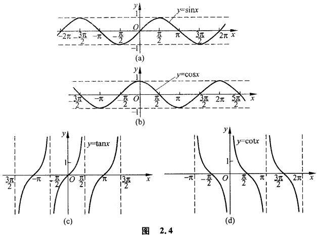 释义 | 函数 邻域 设a与δ为两个实数,且δ>0,数集{x||x-a|<δ}称为点a的δ邻域,点a叫做这个邻域的中心,δ叫做这个邻域的半径,记作 Uδ(a)={x||x-a|<δ}={x|a-δ<x<a+δ}. 数集{x|0<|x-a|<δ}称为点a的去心δ邻域,记作Uδ(a). 函数 设x和y是两个变量,D是一个给定的非空数集,如果对于每个数x∈D,变量y按照一定法则总有确定的数值和它对应,则称y是x的函数,记作y=f(x). 数集D叫做这个函数的定义域,y叫做因变量,x叫做自变量. 单值函数 如果自变量在定义域内任取一个数值时,对应的函数值总是只有一个,这种函数叫做单值函数,否则叫做多值函数. 分段函数 在自变量的不同变化范围内,对应法则用不同的式子来表示的函数,称为分段函数.例如: 取整函数 设x为任一实数.不超过x的最大整数称为x的整数部分,记作[x].这个函数称为取整函数. 反函数 设函数y=f(x),当变量x在一个区域D内变化时,变量y在区域W内变化,如果对于变量y在区域W内任取一个值y0,变量x在区域D内有x0,使y0=f(x0),x=φ(y),则变量y是变量x的函数,函数x=φ(y)称为函数y=f(x)的反函数,二者图形是相同的.习惯上自变量用x表示,因变量用y表示.因此也可以说y=φ(x)是y=f(x)的反函数,原来的函数y=f(x)称为直接函数.这时直接函数与反函数的图形关于直线y=.x对称. 有界性 若 单调性 设函数f(x)的定义域为D,区间I∈D.如果对于区间I上任意两点x1及x2,当x1<x2时,恒有f(x1)<f(x2),则称函数f(x)在区间I上是(严格)单调增加的;如果对于区间I上任意两点x1及x2,当x1<x2时,恒有f(x1)>f(x2),则称函数f(x)在区间I上是(严格)单调减少的. 单调增加和单调减少统称为单调函数. 奇偶性 设函数f(x)的定义域D关于原点对称,如果对于任意x∈D有f(-x)=f(x)恒成立,则称f(x)为偶函数; 如果对于任意x∈D有f(-x)=-f(x)恒成立,则称f(x)为奇函数. 周期性 设函数f(x)的定义域为D.如果存在一个不为零的数l,使得对于任-x∈D有(x±l)∈D,且f(x+l)=f(x)恒成立,则称f(x)为周期函数.l称为f(x)的周期,通常说的周期函数的周期是指其最小正周期. 基本初等函数 (1)幂函数(见图2.1) y=xμ (μ是常数). 图2.1 (2)指数函数(见图2.2) y=ax (a>0,a≠1). 图2.2 (3)对数函数(见图2.3) y=logax (a>0,a≠1). 自然对数函数:y=lnx. 图2.3 (4)三角函数(见图2.4) 图2.4 正弦函数:y=sinx,余弦函数 y=cosx, 正切函数;y=tanx,余切函数 y=cotx, 正割函数:y=secx,余割函数 y=cscx. (5)反三角函数(见图2.5) 图2.5 图2.5(续) 反正弦函数: 反余弦函数:y=arccosx,x∈[-1,1],y∈[0,π]; 反正切函数: 反余切函数:y=arccotx,x∈(-∞,+∞),y∈(0,π). 复合函数 设函数y=f(u)的定义域为Df,而函数u=φ(x)的值域为Zφ,若 初等函数 由常数和基本初等函数经过有限次四则运算和有限次的函数复合步骤所构成并可用一个式子表示的函数,称为初等函数. 双曲函数(见图2.6) 图2.6 双曲函数常用公式 sinh(x±y)=sinhxcoshy±coshxsinhy; cosh(x±y)=coshxcoshy±sinhxsinhy;cosh2x-sinh2x=1; sinh2x=2sinhxcoshx; cosh2x=cosh2x+sinh2x. 反双曲函数 |