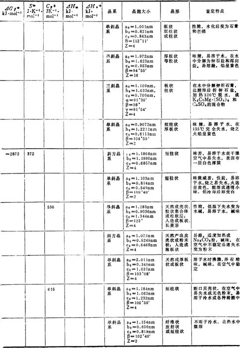 字词 | 制盐及盐化工业上一些盐类的性质、晶体结构和鉴定特点 |