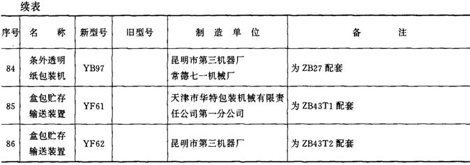 包装机械产品新旧型号对照