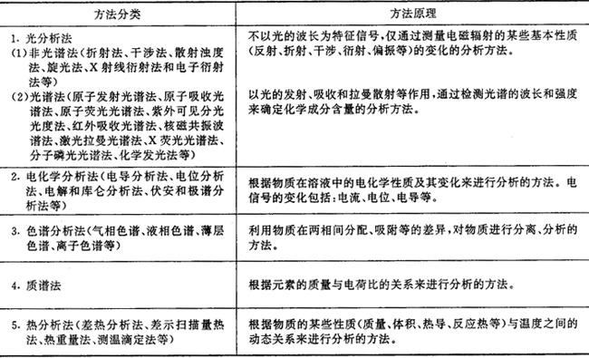 释义 | 化学分析与仪器分析 通常,人们把分析化学中的各种方法分为化学分析和仪器分析两大类。化学分析是指利用物质的化学反应及其定量关系来确定物质的化学组成、成分含量的一类分析方法。而仪器分析是指采用比较复杂或特殊的仪器设备,通过测量物质的某些物理或物理化学性质的参数及其变化进行分析的方法。 1.化学分析的类型 化学分析主要分重量分析和滴定分析两类。重量分析是根据化学反应产物(一般是沉淀)的重量测量来确定被测组分在试样中的含量。适用于含量在1%以上的常量组分测量,可获得0.1%~0.2%的准确度,但操作较麻烦、耗费时间等。滴定分析是将一种已知准确浓度的试剂溶液,用滴定管滴加到被测物质的溶液中,直到化学反应完成为止。依据试剂与被测物之间的化学反应定量关系,通过测量所消耗已知浓度的试剂溶液的体积,求得被测组分的含量,故也称为容量分析法。滴定分析法适用于常量组分的测定,比重量分析简便、快捷。根据化学反应类型的不同,滴定分析可分为酸碱滴定法、络合滴定法、氧化还原滴定法和沉淀滴定法。 2.仪器分析的分类 仪器分析法的分类综合于表12.1-4。 表12.1-4 仪器分析法的分类 【参考文献】: [1]王江主编,现代计量测试技术,中国计量出版社,1990。 [2]鲁绍曾主编,现代计量学概论,中国计量出版社,1987。 [3]全浩主编,标准物质及应用技术,中国标准出版社,1990。 [4]潘秀荣编,分析化学准确度的保证和评价,中国计量出版社,1985。 [5]陈复生主编,精密分析仪器及应用,四川科学技术出版社,1988。 [6]赵藻藩等编,仪器分析,高等教育出版社,1988。 [7]国家技术监督局,国家计量检定规程汇编,化学(一)、(二),中国计量出版社,1989。 [8]罗涤明,计量技术,1993年第6期。 [9]罗涤明,计量技术,1994年第8期。 |