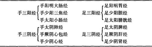 十二经脉有手三阴、三阳,足三阴、三阳。它们的名称,见表2-2。
