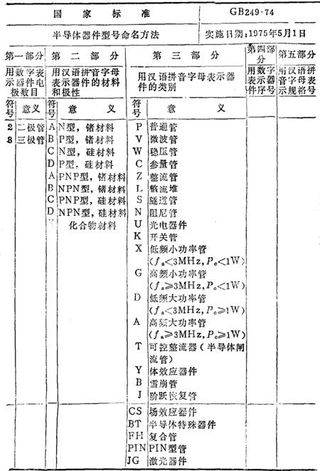 字词 | 半导体分立器件型号命名方法 |
