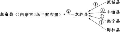 卓资县 见426页“卓资县”、650页“凉城县”、851页“察哈尔右翼中旗”、852页“察哈尔右翼前旗”。