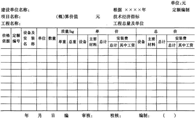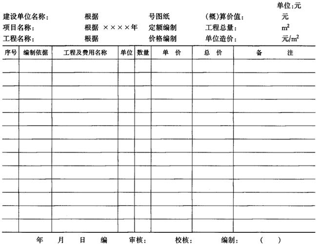 字词 | 单位工程概算表 |