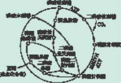 释义 | 卡尔文循环 亦称“光合碳还原环”、“还原戊糖循环”。 美国科学家卡尔文(Melvin Calvin, 1911—)等在1942—1955年间研究植物光合作用中二氧化碳的同化过程中,发现二氧化碳与二磷酸核酮糖作用变成两个磷酸甘油酸。磷酸甘油酸与叶绿体利用光能形成的还原辅酶Ⅱ(NADPH)和腺苷三磷酸(ATP)作用形成磷酸糖,经一系列反应后,一部分变成蔗糖(淀粉)等光合产物,另一部分通过光合碳循环又变成二磷酸核酮糖再与二氧化碳反应。参见“希尔反应”、“光合磷酸化”。 光合作用中二氧化碳的同化粗线箭头表示二氧化碳转化成蔗糖的途径 |
