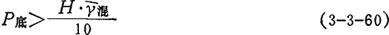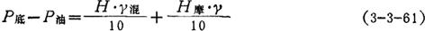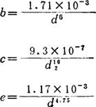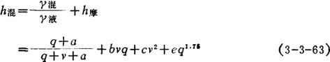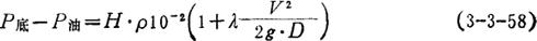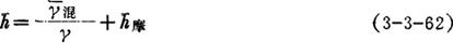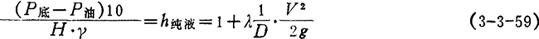 (三)单元管内,混气液体运动的经验方程式 式中 h混——沿油管单位长度上的总压头损失(以纯液柱高度表示) h摩——单位长度油管中的摩擦损失(以液柱高度表示) vq——为气体和液体的体积流量(m3) α=0.785d2 |
