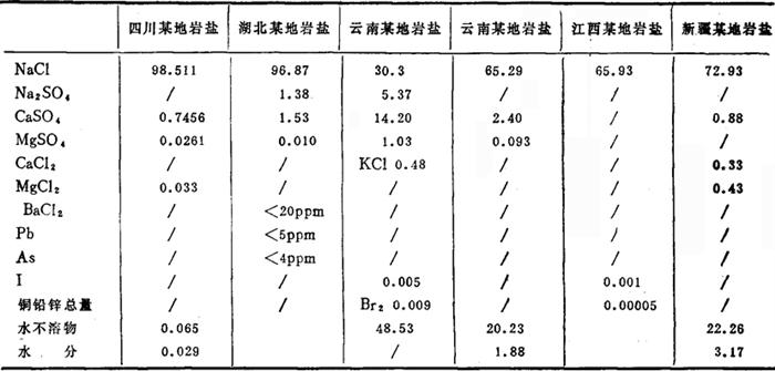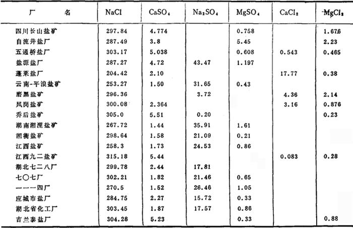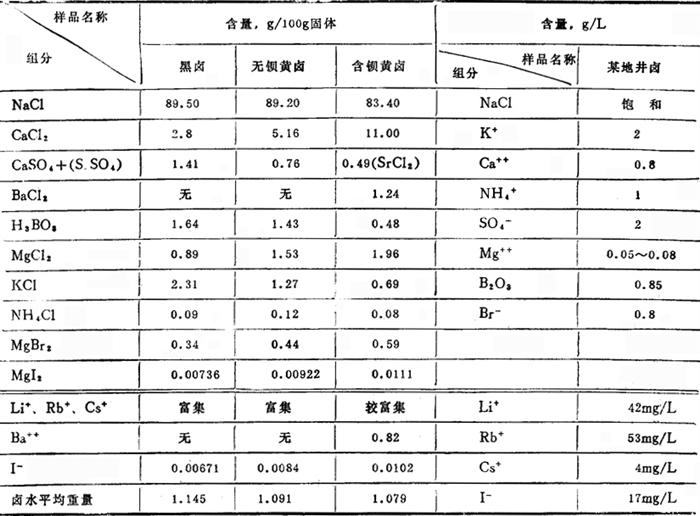 释义 | 卤水的种类及成分 卤水由于成因和制取方法不同,分为“天然卤水”和“人工卤水”。 (一)天然卤水 我国天然卤水盛产于四川及邻近各省,因形成条件不同,其成分、色泽也大不相同:在三迭系海相地层带黑色悬浮物的卤水,称为黑卤;在侏罗、白垩两系地层带黄色悬浮物的卤水,称为黄卤。黄卤因其有钡和无钡之分,又分为有钡黄卤和无钡黄卤。近年来我国在油、气田开采中,副产一种含氯化钠较低的卤水,称为油田水或气田水。此外,一些天然咸水湖也可称作天然卤水。大海里的水也含有氯化钠,但其单独分类,称为海水,不属天然卤水之列。 天然卤水的浓度、成分各不相同,浓的接近饱和,如英国却什尔郡地下天然卤水;有的略淡,如我国自贡的各种黑卤,含氯化钠约12~18%,黄卤含氯化钠8~12%,甚至只含6.5%;油田水和气田水含氯化钠更低,如威远气田水只含3~6%,四川巫溪使用的天然卤水只含4%左右。 我国主要地区天然卤水成分参见表3-4-1~3-4-8。 表3-4-1 四川天然卤水成分 表3-4-2 自贡天然卤水成分 单位(g/L) 表3-4-3 四川某地气田水主要成分表 (单位、mg/L) 表3-4-4 我国典型地下卤水的主要成分 表3-4-5 湖北某天然卤水成分(单位:g/L) 表3-4-6 我国某油田水的组成(相对密度1.05,pH7.60) 表3-4-7 湖北荆州地区天然卤水组成(g/L) 表3-4-8 贵州赤水盐化厂卤水(g/L) (二)人工卤水 人为地将淡水加入固体盐矿床或固体盐中,使其溶解为含氯化钠较高的溶液。国内一些盐矿岩盐成分参见表3-4-9,1987年全国主要厂矿人工卤水成分参见表3-4-10。 表3-4-9 国内一些盐矿岩盐成分(%) 表3-4-10 1987年全国主要厂矿人工卤水成分(g/L) |