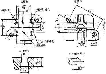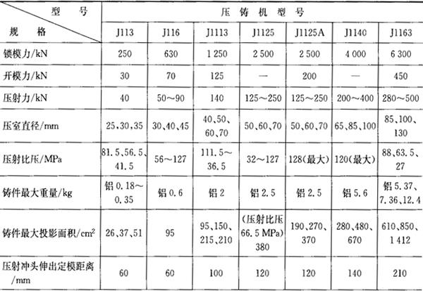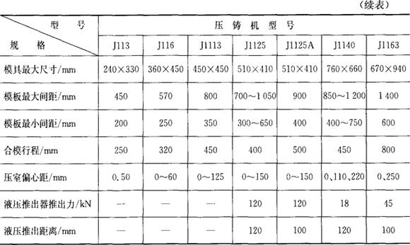 释义 | 卧式冷压室压铸机 ①卧式冷压室压铸机的型号及主要参数见表3.4-4。 表3.4-4 卧式冷压室压铸机型号、主要参数 ②卧式冷压室压铸机模具安装尺寸如图3.4-5~图3.4-11所示。 图3.4-5 J113型压铸机模具安装尺寸 图3.4-6 J116型压铸机模具安装尺寸 图3.4-7 J1113型压铸机模具安装尺寸 图3.4-8 J1125压铸机模具安装尺寸 图3.4-9 J1125A型压铸机模具安装尺寸 图3.4-10 J1140型压铸机模具安装尺寸 图3.4-11 J1163型压铸机模具安装尺寸 |