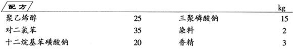 将聚乙烯醇加热熔融,在不断搅拌下加入其余配料,搅拌均匀后倒入内衬塑料的模具中,冷却后,得到重约50g的固体清洗剂。
