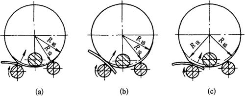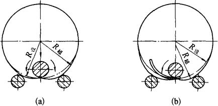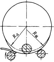 释义 | 卷板机矫正 1.卷板机校圆 不论锥台或圆筒体,焊后都要在卷板机上校圆,主要是矫正焊缝并调整整体曲率,以达到设计的几何形状和尺寸。 (1)过压卷制法的基本原理 校圆的目的就是调整整体曲率使其一致,主要缺陷表现在焊缝处内、外棱角度超差,内棱角的实质是曲率比设计曲率大,外棱角的实质是曲率比设计曲率小。不论哪种棱角,校圆的方法是一样的,这就是过压校圆法,其原理基本同平板机平板原理,即: ①过压卷制后,板料在上下轴辊间上下蠕动后,可将整筒体的应力释放。 ②在封闭状态下过压卷制后,任何一处都经过一个定压力卷制,所以曲率应该是处处相等。 (2)垫压法的基本原理 卷板机在过压或正常曲率下,在板与下轴辊之间旋入一板条,使局部的压强剧增,板条越窄压强越大,因而局部缺陷便得以矫正。 (3)过压程度的确定方法 将待校圆筒体吊入卷板机后,过压上轴辊边转动下轴辊,当上轴辊开始转动后,此时的曲率即为设计曲率,若再压下上轴辊即为超曲率,上轴辊压下越多,超曲率越大,同时配以电动机运转的负载声音及正断面观察端口的椭圆程度来确定。过压程度的大小,由棱角度的超差程度决定。 (4)过压卷制的操作方法 过压卷制法可适于一切旋转体,常见的有正锥台和正圆筒。 ①矫正内棱角。如图8-54所示,为过压矫正内棱角的方法,将被矫筒体吊入卷板机,约在设计曲率转动一段距离后,再逐渐过压达到超设计曲率,不要一开始就压至过压曲率,以免出现急弯。在此曲率下转动2~3周,内棱角即可消除。 图8-54 过压卷制矫正较大内棱角 ②矫正外棱角。如图8-55所示,为过压矫正外棱角的方法,其操作方法完全同矫正内棱角,此略。 图8-55 过压卷制矫正较大外棱角 通过上述操作,若矫正效果不明显,可再加一点压力一试,再不见效就要考虑采用垫压法。 (5)垫压矫正严重棱角度和直段的操作方法 一般的筒体,通过上述方法矫正后,即可达到校圆的目的,但遇到严重棱角或小急弯时,过压矫正也是无能为力的,只能配以垫压法矫正。 ①垫压法基本操作手法。需矫部位待转至下轴辊前,必先将垫铁按于其上,以确保正确的垫压位置。 ②垫压矫正严重外棱角。如图8-56所示,在过压情况下,在外侧垂直旋入垫条,局部外棱角局部垫压,全长外棱角全长逐段垫压,若效果不明显时,可考虑加一点压力或换稍厚垫条(垫条厚度一般3~8mm,以下同),定能收到满意效果。 图8-56 用垫压法矫正严重外棱角 ③严重内棱角的矫正。如图8-57所示,其矫正方法与矫外棱角稍有不同,图(a)为不用垫条直接加压矫正,压下上轴辊后配以前后转动,以观效果,若效果不明显,可再加压配转动,定能收到预期效果(由此可看出,预弯头时稍过比稍欠有利于矫正);图(b)为局部出现严重内棱角或直段,可在内侧斜方向旋入垫条进行矫正(斜方向便于操作),若效果不明显,或加压或换稍厚垫条,缺陷即得矫正。 图8-57 严重内棱角的矫正 (a)过压矫正全长内棱角;(b)垫压矫正局部内棱角 ④用垫压法同时矫正局部外棱角和直段。如图8-58所示,在过压情况下,随其转动将垫条垫于内外变形部位,垫压一次或几次即可见效。此法比分别垫压见效快。 图8-58 用垫压法同时矫正局部外棱角和直段 (6)垫压操作正误方法分析 用垫压法矫正缺陷时,垫压操作者必须与卷板机司机密切配合,叫停就停,必须垫压在最需要矫正的部位。如图8-59所示,图(a)为恰好垫压在需要矫正的部位,矫正效果最佳;图(b)为恰好卷过了情况,棱角部位被矫后,棱角以后的正常部位反被垫直,矫此伤彼;图(c)为垫过了的情况,即垫条超前了,不需要矫正的部位被垫直,而真正需要矫正的部位却未被矫正。所以垫压的部位必须要正确,才能收到预期的效果。 图8-59 垫压操作正误方法分析 (a)适中;(b)卷过;(c)垫过 (7)起升上轴辊的方法 所有缺陷矫正后,不要立即大幅度起升上轴辊,以防全周曲率不一致,原则上说应上升一点转一大段距离,依次进行。具体地说其程序是: 过压矫正→稍升一点上轴辊→转一周→再稍升一点上轴辊→转大半周→再稍升一点上轴辊→转半周→再稍升一点上轴辊→转 经上述方法操作后,定能达到校圆的目的。 2.矫平基础环 多片基础环焊接后,会出现不同程度的凸凹状,会影响与裙筒体的组对,起码也给组对裙筒体增加一定工作量,所以基础环与裙筒体组对前,先矫平基础环是很有必要的。其方法大致有二。 (1)在卧式调直机上矫平 如图8-60所示,将需要矫正的部位与挂绳扣部位呈径向布置,按矫正常规可在其上顺利得以矫正。 图8-60 在卧式压力机上矫正基础环 (2)在卷板机上矫平 如图8-61所示,两点径向系好绳扣,将活动床头打开,使凸面朝上推入一侧基础环,然后合拢床头,压下上轴辊,按常规操作便可顺利矫平。 图8-61 在卷板机上矫正基础环 以上两法的好处是不受直径的限制,而在立式压力机上受直径的限制。 3.卷板机矫正钢板条 热切后的钢板条易形成立弯,很少有平弯和扭曲,在斜口剪床上剪下的钢板条易形成复合弯形,即立弯、平弯和扭曲,板越薄越明显。在平板机上只能矫正平弯和消除部分扭曲,在三轴辊卷板机上能矫正平弯和扭曲。立弯由它的断面形状所决定,在上述两种机械上都不能矫正,只能用卧式或立式压力机矫正。下面叙述在三轴辊卷板机上矫正平弯和扭曲的方法。 (1)矫正平弯的方法 如图8-62所示,为矫正在斜口剪床上剪下的H钢腹板