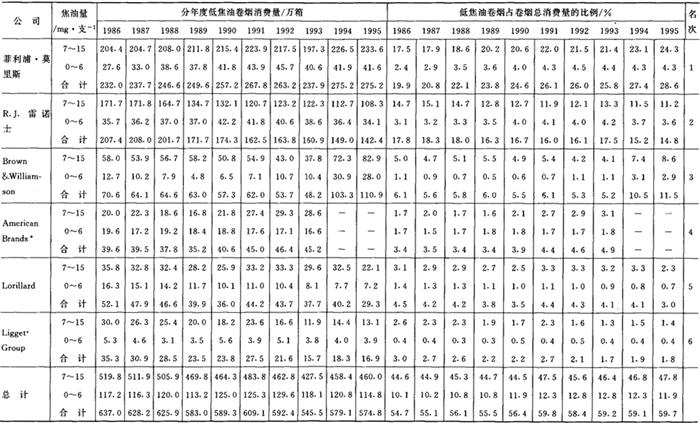 释义 | 卷烟焦油量和卷烟类型的发展变化 (一)卷烟焦油量的变化 1.变化的起因 (1)自16世纪初,烟草由美洲大陆引入到西班牙和英国后,人们即对吸烟与健康问题产生了不同的看法和争论。但直到20世纪50年代初期,英国皇家医学会公开提出吸烟将危害健康之后,吸烟与健康问题才逐步受到世界各国的重视,认为吸烟对人体健康是有危害的,并认为吸烟与肺癌和心血管疾病有密切的关系。 (2)到50年代末期,美国卫生署和英国皇家医学会,都正式发表公告,认为吸烟过量是产生肺癌的病因因素之一。许多国家的卫生部门和有关的医学会等组织,以及烟草工业的科研机构相继开展了关于吸烟与健康各个方面的广泛研究,发表了大量的研究报告,并认为吸烟与许多人类疾病(甚至是一些致命性疾病)有关。一些国家的行政部门相继制定了许多与吸烟有关的法令和规定,广泛宣传吸烟对健康的危害性并对烟草的广告宣传和吸烟场所进行了限制。 (3)自60年代初以来,全球性的反吸烟运动日益高涨,烟草行业受到了反吸烟运动越来越大的冲击。世界上许多国家尤其是欧美发达国家的政府纷纷立法或做出一些规定,限制卷烟的焦油量,从而促使低焦油和低烟碱卷烟得到了迅速发展。许多国家所生产卷烟的平均焦油和烟碱量也逐年下降,低焦油卷烟占市场比例逐渐增大。 2.变化情况 (1)美国自1984年起卷烟的平均焦油量已降到12.5mg/支以下,自1982年起卷烟焦油量低于15mg/支的低焦油卷烟占其市场的份额已达56.8%以上,到1991年以后低焦油卷烟占其市场的比例为60%左右。1995年与1986年相比较低焦油卷烟的变化见表2-5-6。 表2-5-6 美国市场低焦油卷烟的变化情况 1986~1995年美国6家烟草公司低焦油卷烟消费量及其占市场份额见表2-5-7。 (2)1996年英国、德国、奥地利等国生产的卷烟其焦油量的加权平均值都在11~13mg/支左右。 1996年卷烟焦油量在10mg/支以下的卷烟所占部分国家的市场份额分别为:英国36%;德国36%;意大利43.5%。 (3)1996年,世界上最畅销的名牌卷烟的焦油量一般都在16mg/支以下。 (4)从1974年到1994年的20年中,日本卷烟市场上卷烟的平均焦油和烟碱量已降低了50%,即分别从18.0mg/支和1.32mg/支下降到了9.5mg/支和0.78mg/支。 1996年日本市场上焦油量低于15mg/支卷烟的市场份额已达95%以上。1995年焦油量<6mg/支的卷烟占市场比例为15%,<11mg/支的卷烟占市场比例为63.0%。 (二)卷烟类型的变化 随着世界范围反吸烟运动的兴起和发展,以及消费者对“吸烟与健康”问题的关注,卷烟的消费趋向于对人体危害性较小的低焦油混合型卷烟。滤嘴卷烟在绝大部分国家占市场的比例已超过60%,有的国家甚至高达100%(详见表2-5-7)。低焦油混合型卷烟和低焦油、低烟碱的淡味混合型卷烟是世界卷烟生产发展的必然趋势。 表2-5-7 1986~1995年美国各烟草公司低焦油卷烟消费量、占市场份额及名次 注:*该公司已被英美烟草公司(BAT)收购并已与BAT的子公司——Brown & Williamson公司合并,因而没有1994年和1995年的数据。 一些国家的传统卷烟产品如西欧的深色卷烟、东欧和西亚的香料烟型卷烟、许多国家焦油量较高的烤烟型卷烟的消费量正逐渐减少。 以我国新混合型卷烟为代表的、具有一定的保健或疗效作用的新型卷烟已有一定的发展。 以美国、日本为代表的发达国家十分重视特低焦油、特低烟碱、减少侧流烟气以及不冒烟卷烟的研究与开发,取得了许多成果。见表2-5-8。 表2-5-8 世界各国研制的部分卷烟新产品 |