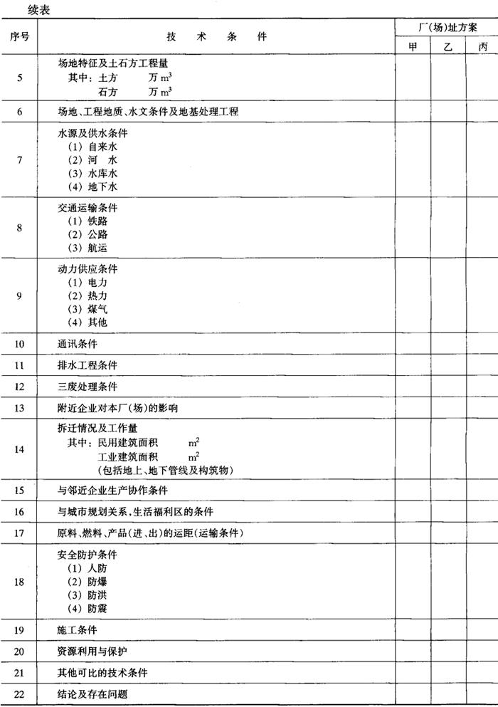 释义 | 厂址选择报告 厂址选择工作是在对原料、燃料、地质、地形、水文、动力、交通等建设、施工条件以及社会、法律、经济、文化、自然环境等调查分析的基础上,客观地、公正地、科学地进行多方案综合比选,提出推荐意见,征求厂址所在地主管部门意见后,编制厂址选择报告。 厂址选择报告的深度应能满足项目可行性研究及论证审批要求,并为场地征购和开展项目初步设计提供依据。 厂址选择报告的编写内容可按《轻工业建设项目厂(场)址选择报告编制内容深度规定》(QBJS20)执行。内容包括: 1.选厂依据及简况 说明依据的项目建议书及批文;建厂条件;选址原则;选址的范围、选址经过。 2.拟建厂基本情况 工艺流程概述及对厂址的要求,见表6-2-1。三废治理及污染物经处理后达标及排放情况。 表6-2-1 拟建厂(场)基本条件表 3.厂址方案比较 概述各厂址自然地理、社会经济、自然环境、建厂条件及协作条件等。对各厂址方案技术条件、建设投资和年经营费用进行比较,技术条件比较见表6-2-2,建设投资比较见表6-2-3,年经营费用比较见表6-2-4。 表6-2-2 技术条件比较表 表6-2-3 建设投资比较表 万元 表6-2-4 年经营费用比较表 万元 注:费用包括相应设施的运营及维护费。 4.厂址方案推荐 论述推荐方案的主要优缺点,并与拟建厂所要求的基本条件进行比较。 5.当地政府及有关方面对推荐厂址的意见 6.结论、存在问题及建议 |