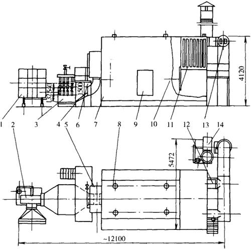 释义 | 压力喷雾干燥装置 (一)特点与用途 料液的雾化是采用压力喷雾法实现的。调节生产率的办法是调换不同口径的喷嘴或增减喷嘴数,因此很难在生产中进行调节。制品颗粒较小,分布范围较小;制品密度大,在生产中可调节的范围小;制品空气含量较低,溶解度的控制较难掌握,有均质作用。所干燥的物料浓度应在40%(干物质)左右,浓度高易堵塞喷嘴。喷雾塔可采用立式,也可采用卧式。 (二)工作原理与结构 整套压力喷雾干燥装置由空气过滤器、进风机、空气加热器,压力喷雾器、干燥室、排风机等组成。按喷雾塔分为立式和卧式两种。见图4-9-1和图4-9-2。 图4-9-1 立式压力喷雾干燥装置 1-立式压力喷雾干燥塔 2-跳车 3-分汽缸 4-空气加热器 5-空气滤清器 6-进风机组 7-控制仪表箱 8-排风机组 9-排风管路 10-出粉阀 图4-9-2 卧式喷雾干燥装置 1-空气过滤器 2-进风机 3-空气加热器 4-进风管 5-分风箱 6-高压进乳管 7-干燥室 8-灯孔 9-门 10-窥视镜 11-布袋过滤器 12-排风碟阀 13-排风管 14-排风机 经空气过滤器过滤的洁净空气,由进风机吸入经空气加热器加热至高温后,送到干燥塔顶部的热风箱(由呈锥形的均风器及调风管等组成)。热风以一定速度均匀进入塔内,并与经高压泵以7000~20000kPa的压力通过带有0.5~1.2mm喷孔喷嘴而雾化的料液相聚,在几十分之一秒甚至几百分之一秒的瞬间进行热交换和质交换,使微粒干燥脱水。干燥后的微粒落入塔底下部圆锥部分,并与尾气微粒捕集器收集的粉混合,不断地被卸出。 微粒捕集器多采用袋滤器,它紧靠在塔体旁边,分成数组,每组有一只气动蝶阀与振动装置,各组可轮流在关断排气口的同时振动布袋,以振落布袋内的积粉,再由螺旋输送器送至塔底圆锥部分。 压力喷雾器由喷嘴和高压泵组成。压力喷嘴均有使液流产生旋转的导沟,按导沟之轴线与喷嘴轴线关系的差别分为M型喷嘴(两轴线垂直,但不相交)和S型喷嘴(导沟轴线与水平成一定角度),见图4-9-3。 图4-9-3 喷嘴 (1)M型 (2)S型 1-管接头 2-螺帽 3-孔板 4-喷头座 5-喷头 6-管接头 7-喷头座 8-芯子 9-垫片 10-喷头 喷雾干燥室是热空气与被干燥的料液进行热交换和质交换的场合,要求一定的空间,以提供足够的空气及物料在干燥室内停留的时间,保证制品的含水量达到生产工艺要求,又不致受热过度或产生粘壁等现象。结构多为立式塔型,上部呈圆柱形,下部圆锥形。压力喷雾嘴装于塔顶,并与热风箱均风器套装在一起,塔体下部圆锥部分装有数只空气振荡器,以定时轮流敲击锥体,使塔体积粉松动而沿塔壁滑下。空气从锥形部分的侧面排气管排出风,塔高按喷雾液滴下落达到干燥所需飘浮距离来确定。 (三)主要技术参数 压力喷雾干燥设备主要技术参数见表4-9-1。 表4-9-1 压力喷雾干燥设备主要技术参数 |