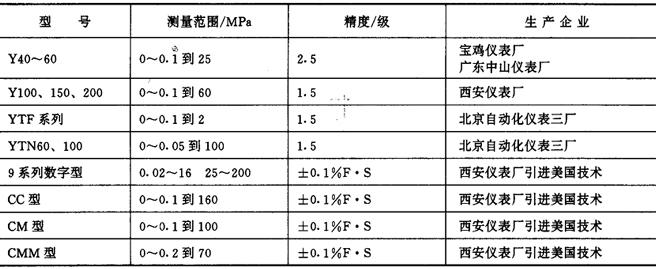 | 释义 | 压力检测仪 (一)常用压力检测仪表 其技术参数见表9-11-13。 表9-11-13 常用压力仪表主要技术参数