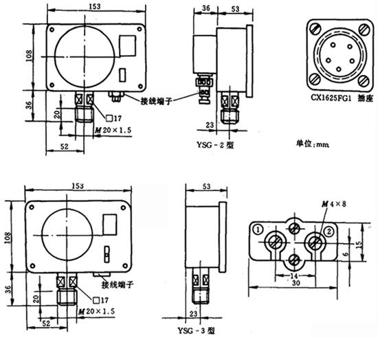 图9-11-10 YSG系列电感压力变送器外形尺寸 4.生产厂家 上海自动化仪表四厂。 |