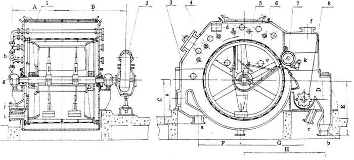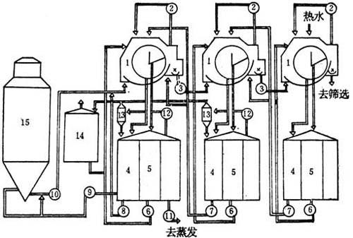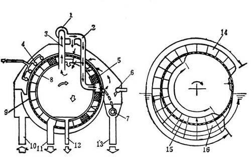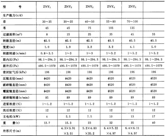 释义 | 压力洗浆机 1.原理 压力洗浆机是较新的洗浆设备。 压力洗浆机是利用洗鼓外的气压对洗鼓网面上浆层进行压力过滤洗浆。鼓外气压由高压鼓风机生成,有时也可辅以蒸汽。 压力洗浆机利用提高过滤效能。不需要真空系统,可安装在较低的楼面(4~5m)。 洗鼓全周分成过滤区、置换洗涤区和剥浆区。 压力洗浆机要保持洗鼓气压必须防止漏气,密封罩壳与转鼓之间,剥浆区压辊与转鼓之间都要密封。 2.主要结构与特点 ①主要结构有洗鼓、滤液收集、鼓端密封,剥浆与出浆装置等组成。 ②主要特点——压力洗浆机密封性好,对进浆量与进浆浓度适应性较大,不易掉网、堆浆。 密封压力洗浆可采用较高洗浆温度80~85℃,可减少散热,提高黑液温度。 压力洗浆可采用单台一段或单台两段洗涤,如用三台六段可作各种浆料的黑液提取及洗涤。 压力洗浆各段浆料依靠轴流泵输送,浆料稀释混合均匀,流送状态好,操作方便,可实现自动化仪表控制。 压力洗涤是正压过滤,不易产生滤液汽化和泡沫,酸法浆也不会逸出SO2污染大气,SO2可回收。钙盐浆的钙结垢清洗方便。 压力洗浆机的压力差受洗鼓直径和鼓风机性能限制,在鼓径Φ2.5~4m,鼓外气压只能到7.85~11.77kPa水柱。对脱水难的草类浆料,新式压力洗可在鼓内抽真空,增加洗涤过滤效能。 压力洗可选用先洗后筛的流程,提高提取率。 图6-4-25 压力洗浆机 1-转鼓密封 2-转鼓传动 3-鼓槽 4-喷洗装置 5-载鼓 6-二段排液装置 7-密封辊装置 8-散浆器 压力洗浆机所需动力多,电耗大。 3.压力洗浆机的技术特征 压力洗浆系统应选用多台串联,除主机外,还需配备高压鼓风机、轴流浆泵和滤液槽及自控仪器仪表。 表6-4-29 压力洗浆机主要技术特征 表6-4-30 配套的高压鼓风机的技术特征 表6-4-31 配套的轴流浆泵的技术特征 4.压力洗浆机洗涤工艺流程 压力洗浆机在生产流程中可分为单台一段或单台两段洗涤。一般采用多段逆流洗涤流程提取浆料黑液。如图6-4-26。其洗浆参数对浆料质量有影响,设备特性根据浆料的特定条件而变化。 图6-4-26 压力洗浆机多台串联逆流洗涤流程 1-洗浆机 2-高压风机 3-浆泵 4-1.3.5级大废液槽 5-2.4.6级小废液槽 6、7、8、9-废液泵 10-喷放锅抽液泵 11-废液泵 12-泡沫风机 13-泡沫分离 14-泡沫槽 15-喷放锅 5.操作及注意事项 ①开机时,控制纸浆浓度由小到大,以防堆浆或堵塞,并保持上浆量稳定。 ②提高洗涤水的温度,有利于扩散,降低泡沫的稳定性。一般要求水温在85~90℃之间,但温度超过90℃时,洗浆机内产生大量蒸汽,对过滤不利。 ③各段洗浆喷液管的喷放量应均匀,注意喷淋黑液不要破坏浆层。 ④风压大,洗浆效果好,风压提高0.1m水柱,洗净度可提高3%左右,但要保持洗浆机内风压稳定。 ⑤压力洗浆机转鼓内滤液面与液槽位差仅有2~2.5m,所以,废液槽可制成矮胖形,容量以贮存8min废液即可。 ⑥压力洗浆机是多效的,可在大废液槽中套小废液槽,进行双效洗涤时,大槽贮第一效的过滤区废液,小槽贮第二效置换洗涤区的残废液。 6.压力洗浆机用于草浆洗涤的认识 ①压力洗浆机洗涤碱法草浆不尽适宜,黑液提取率不高。 ②压力洗浆机洗涤草浆压差小,出浆浓度偏低,浆层不如真空洗浆机那样能保持多孔性。 ③压力洗浆机价格高于真空洗浆机2倍多,投资较高。 7.新型的HP型压力洗浆机 HP型压力洗浆机和国产压力洗浆机相比,外形基本相同。主要区别是HP型压力洗浆机除了用压力气流使浆料脱液之外,尚利用水腿产生真空脱液,所以,HP型压力洗浆机既利用压力气流脱液,又借助真空脱液,是一种特殊结构的压力洗浆机。其工作原理见图6-4-27。 图6-4-27 HP型压力洗浆机的工作原理 1-风机 2-剥浆用的压力气流 3-返回风机的气流 4-洗涤液管 5-密封滑块 6-稀释水管 7-碎浆螺旋 8-滤液小室 9-洗鼓滤网 10-进浆口 11、12-滤液排出管 13-出浆管 14-风机气流施加于浆层的压力 15-水腿产生的真空 16-液位差形成的静压 HP型压力洗浆机主要用于大型硫酸盐浆厂,装在依斯科(ESCO)连续蒸煮器之后洗涤浆料。也可用于脱水困难的麦草浆。根据国外资料介绍,洗涤能力可达2.5t/(m2·24h)。 |