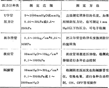 表2-1 压力的测定表