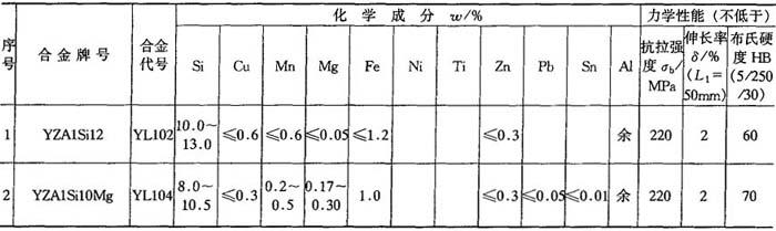 表5-112 压铸铝合金的化学成分和力学性能
