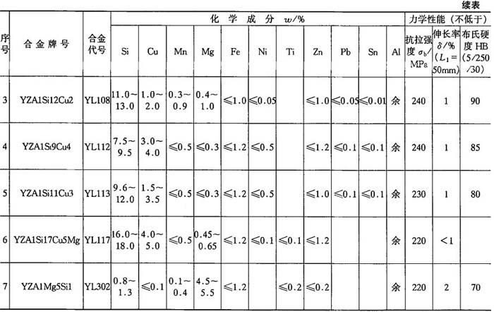 (3)压铸铝合金见表5-112.