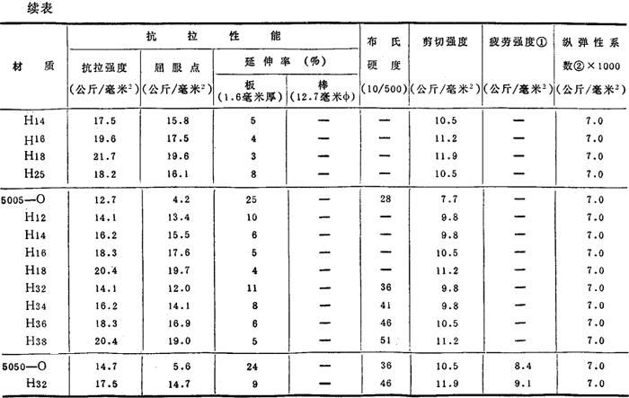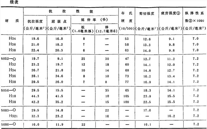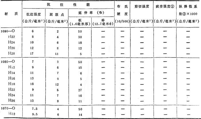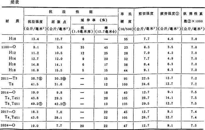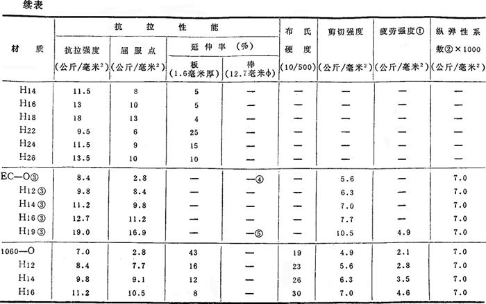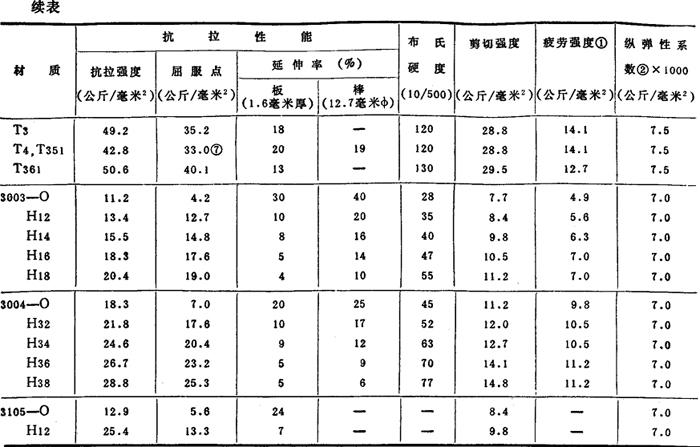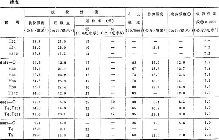 注:①:用R.R.Moort型试验机(5×108周期)测试的疲劳强度。