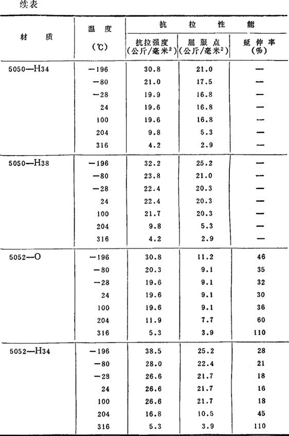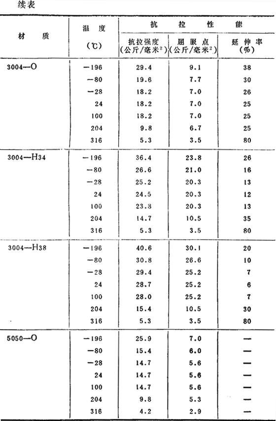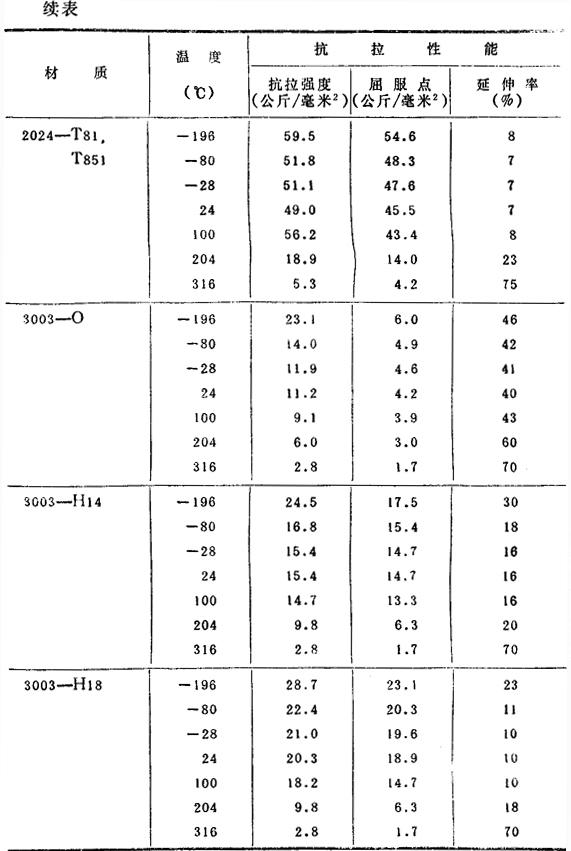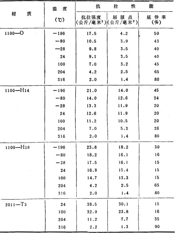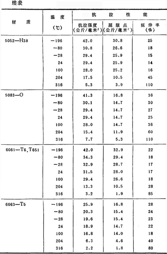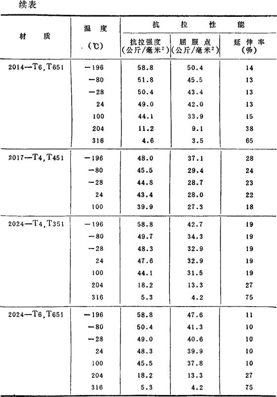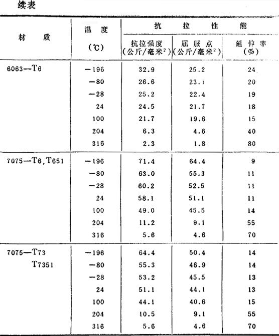 (2)各种温度下的机械性能