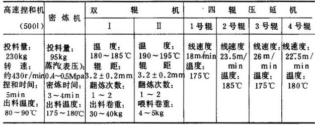 释义 | 压延的工艺条件 现将三辊和四辊压延机生产硬聚氯乙烯片材的工艺条件(包括原料配制过程),分别列表如6-3-2、6-3-3。 表6-3-2 三辊压延聚氯乙烯硬片的工艺条件举例 表6-3-3 四辊压延聚氯乙烯硬片的工艺条件举例 |