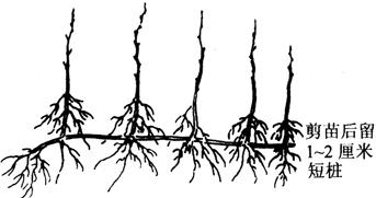 图7-19 萌芽下部留短桩截取砧苗